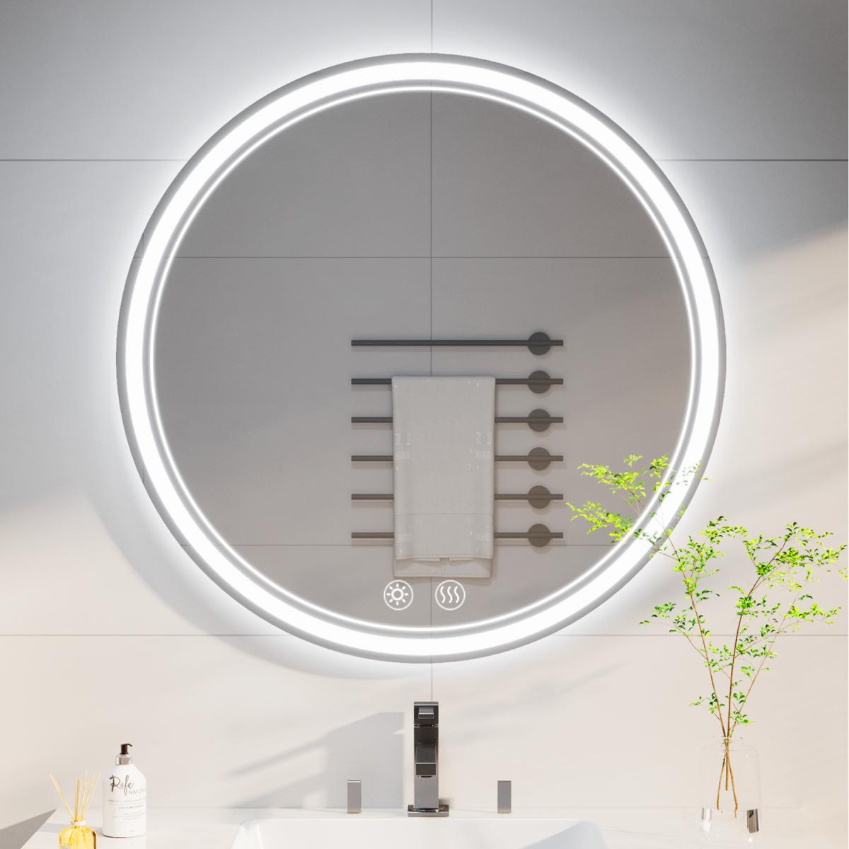 60x60cm bathroom mirror, bright, simple and elegant design, the light passes through the translucent surface in the center, doubly natural, perfectly adapting to your beautiful face. 3 types of light color temperatures (3000K-6500. K), suitable for all skin tones. Brightness is adjustable from 5% to 100%. High-quality light strip, 192 LEDs per meter, with a lifespan of over 50,000 hours. Our bathroom mirror features a memory function that retains your favorite brightness and color temperature settings. The mirror can also be controlled via a wall switch. The dehumidification system of the new LED bathroom mirror is no longer linked to the lighting, meaning it will only be activated when needed. Even in a humid bathroom, you can see a clear reflection in the center of the mirror (the defogging system automatically turns off after one hour). The LED light strip is splash-proof (IP65), and the entire LED bathroom mirror has an IP44 rating. So you can count on its longevity, even with daily splashes. Hardwired installation gives the mirror a sleek, clean look. Comes with instructions and hardware for easy installation.