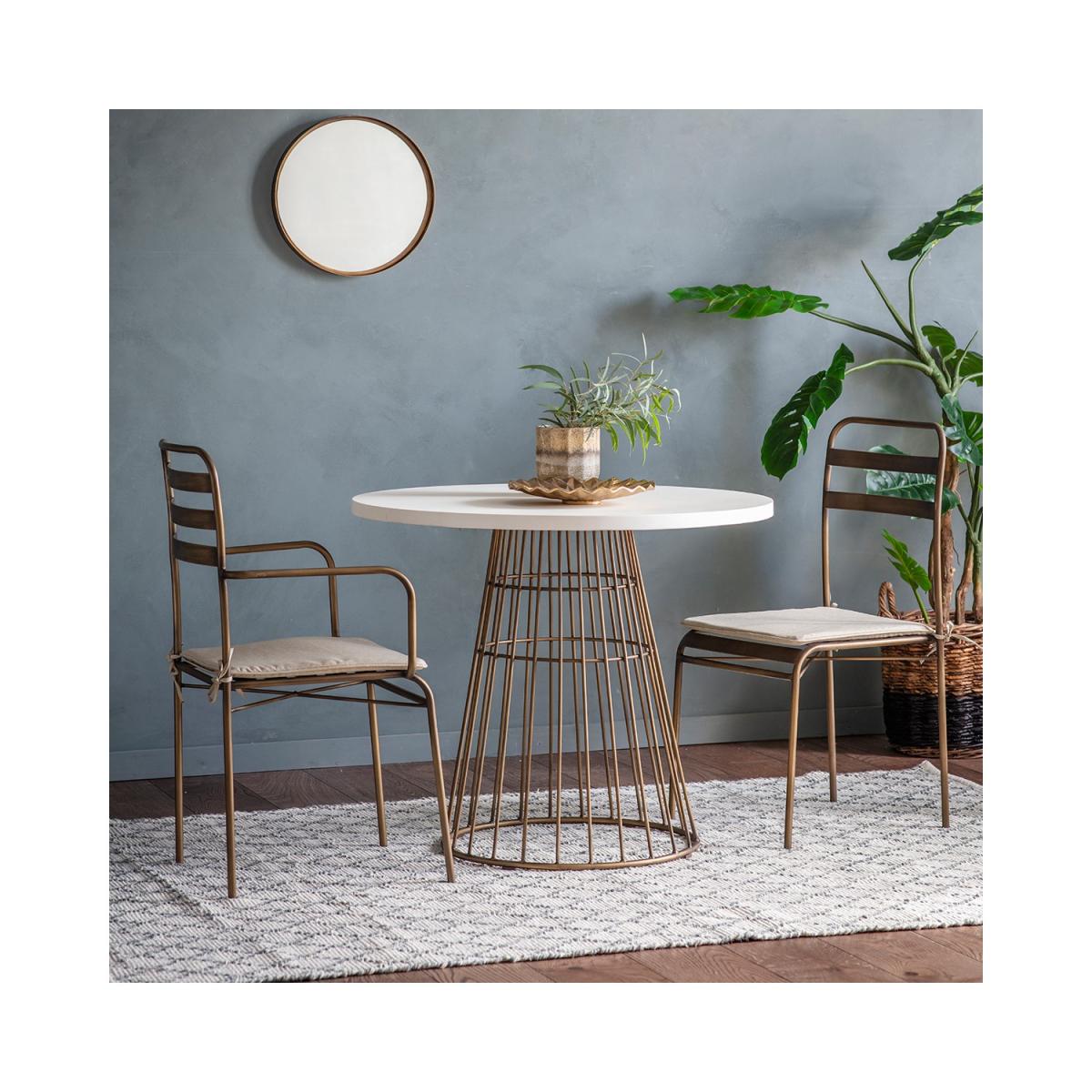 I love this bistro table for its versatile mix of elegance and modernity. The white top paired with the gold wire base makes it a stylish statement piece that works well in contemporary or art deco-inspired interiors. It’s perfect for small kitchens, breakfast nooks, or even as a chic addition to a home bar area. When styling, consider pairing it with metallic or glass chairs to enhance its luxurious feel, or add warm textiles like velvet cushions for a cosy touch. Practical tips include using it as a day-to-evening piece - it’s ideal for casual coffee mornings or cocktail hours, blending practicality with standout style.