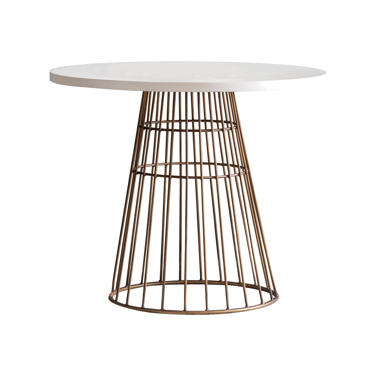 Dimensions W90 x H76 x D90 cm Features. Stylish and modern White table top and gold legs complement each other Neutral tones will match a range of décor. Spacious round table top Assembly not required..