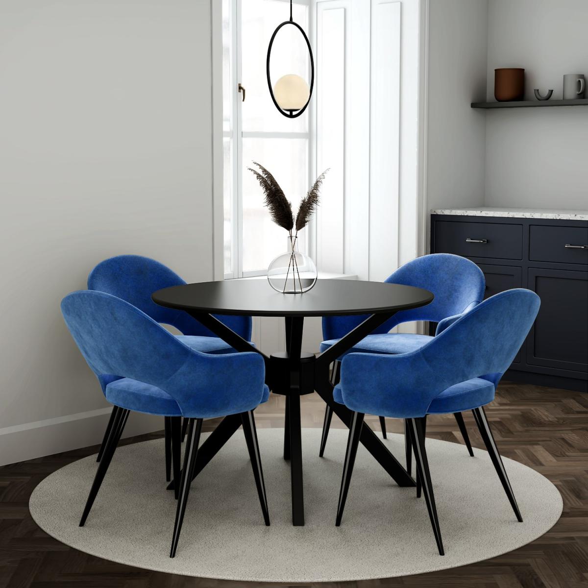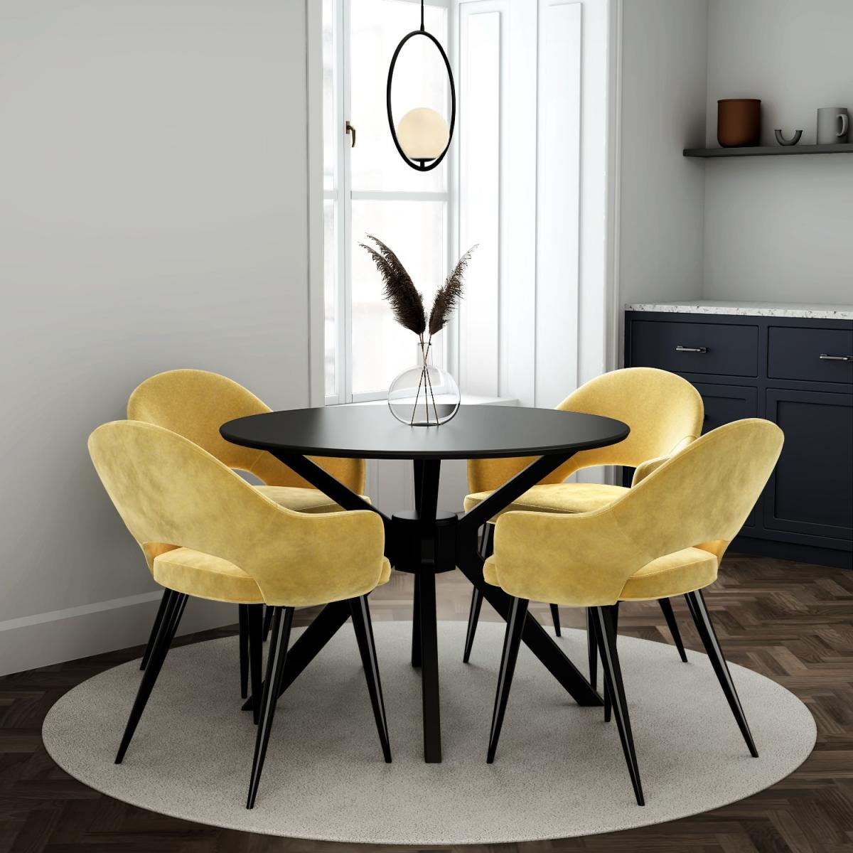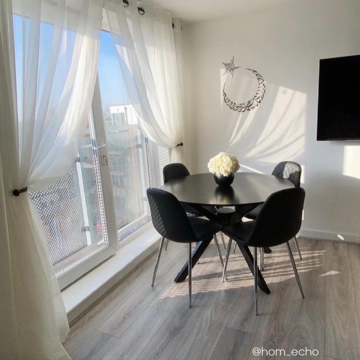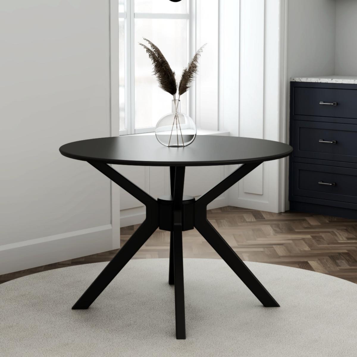I’m a big fan of this round black table for its clean lines and sturdy X-style base - it’s equally at home in a pared-back Scandi scheme or a more dramatic monochrome dining room. The matte finish makes it simple to style: pair it with mixed-material chairs (think rattan and leather) and layer a neutral jute or wool rug underneath for warmth. Keep centrepieces low - a slim vase of grasses or a shallow ceramic bowl - and add a statement pendant light above to balance the table’s slim profile.