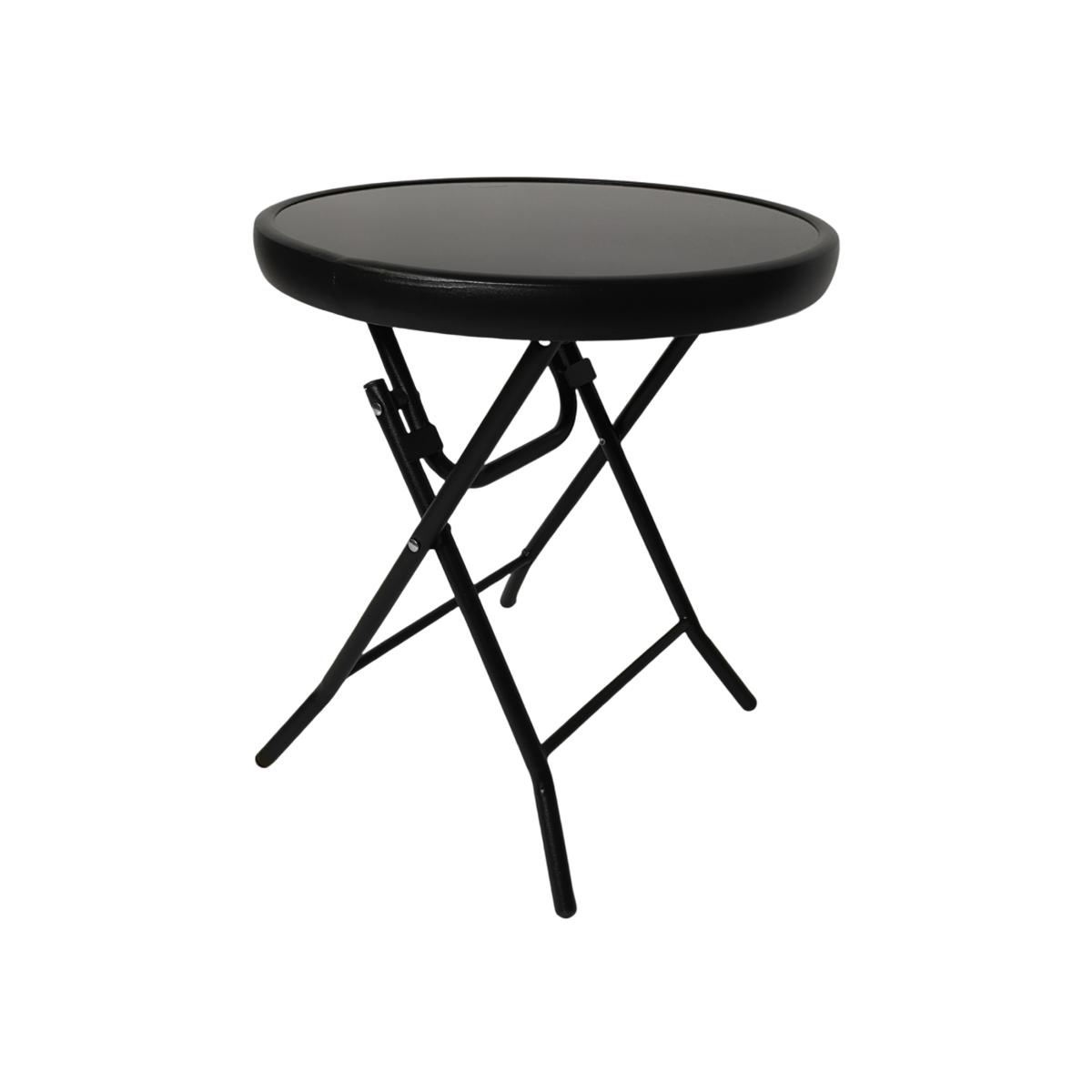 Round Black Glass Folding Garden Furniture Side Table - Black