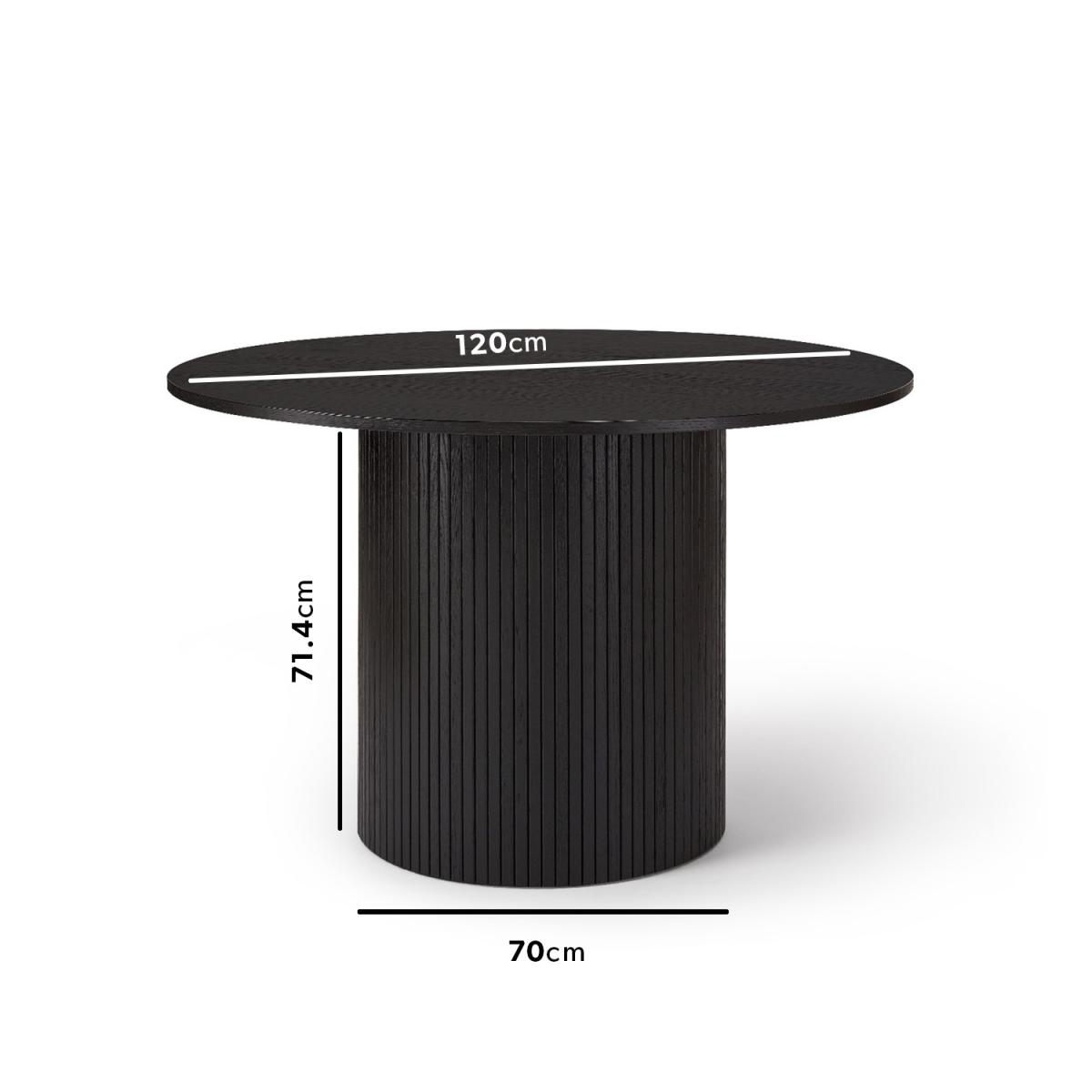 This bundle includes: Round Black Oak Dining Table - Jarel 4 x Cream Boucle Dining Chairs - Ally Care instructions - Please use heat-protective mats & coasters when placing food & hot/cold drinks onto the table to protect the natural oak wood, clean up any spills straight away as oak wood is porous and will absorb liquids. Features we love Ideal for up to 4 diners Ribbed detailing on the base adds a unique touch Blackened oak contemporary round dining table Pair of cream boucle upholstered armchair dining chairs with black legs Boucle fabric adds a soft-touch textured finish Need to know Dining Table Information Dimensions:H76 x W120 x D120 cm Material:Blackened oak veneer and solid oak Finish:Lacquered Assembly required:Yes Dining Chair Information Number of chairs: 4 Dimensions: H83 x W60 x D58 cm Material: Fabric, foam and metal Finish: Cream boucle fabric with sleek black legs Assembly required: Yes Range: Ally