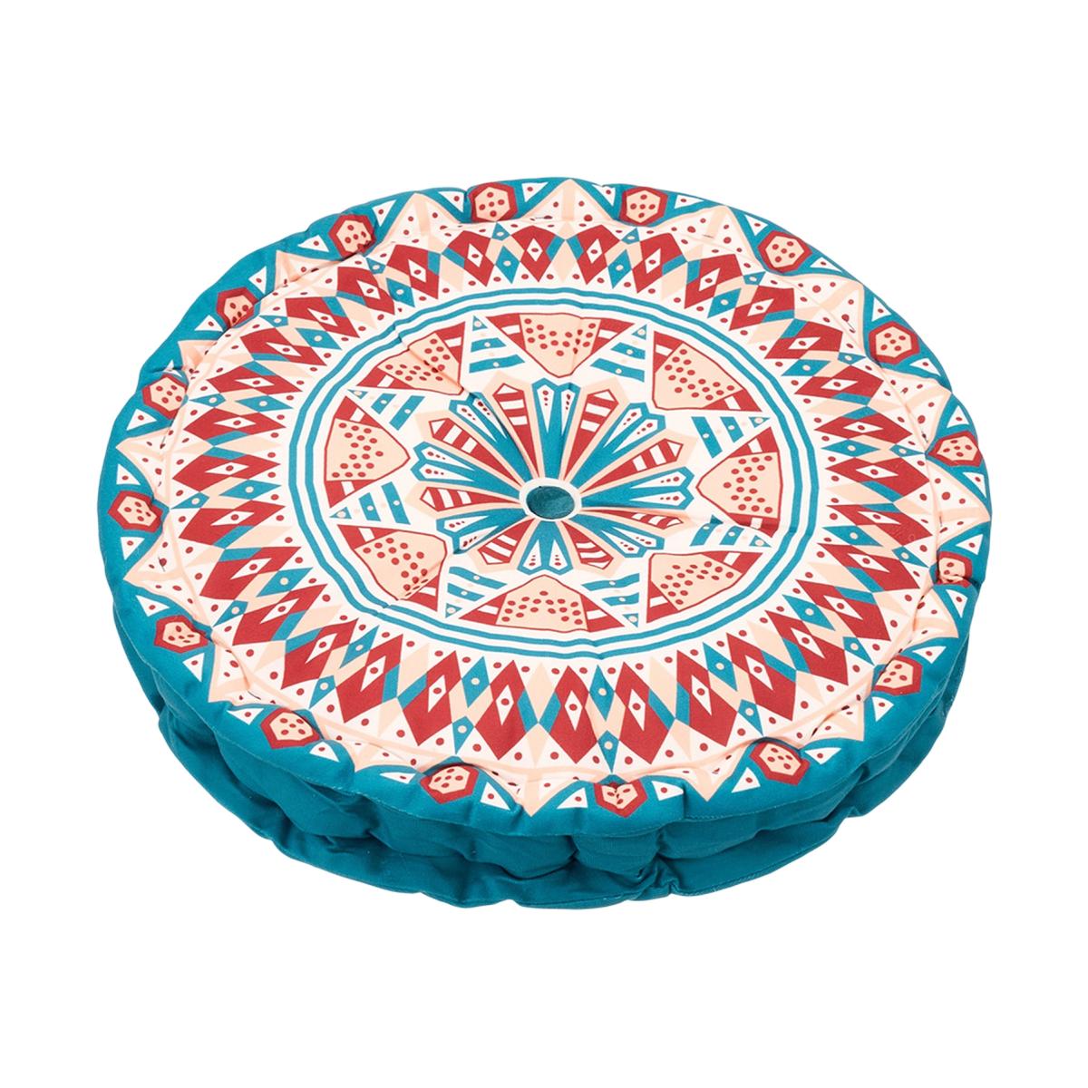 Embrace a touch of Bohemian flair with a stunning round seat cushion that brightens any space. Bold, colourful motifs evoke a sense of artistic freedom, instantly infusing any space with global charm. A button-tufted centre creates charming folds, enhancing its visual dimension while providing added comfort. Generously filled with soft padding, it ensures a plush seating experience that maintains its shape even after prolonged use. Perfect for relaxing, meditating, or simply adding a pop of colour to your decor, this cushion offers both style and comfort in one delightful package.