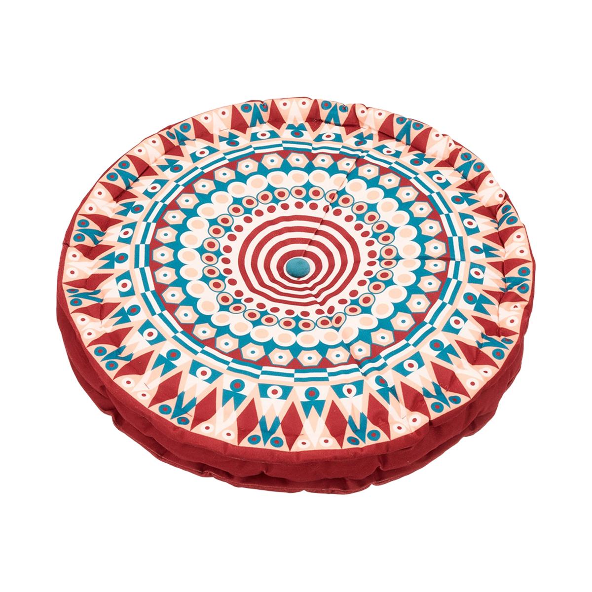 Embrace a touch of Bohemian flair with a stunning round seat cushion that brightens any space. Bold, colourful motifs evoke a sense of artistic freedom, instantly infusing any space with global charm. A button-tufted centre creates charming folds, enhancing its visual dimension while providing added comfort. Generously filled with soft padding, it ensures a plush seating experience that maintains its shape even after prolonged use. Perfect for relaxing, meditating, or simply adding a pop of colour to your decor, this cushion offers both style and comfort in one delightful package.