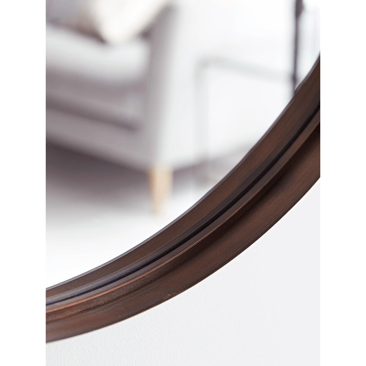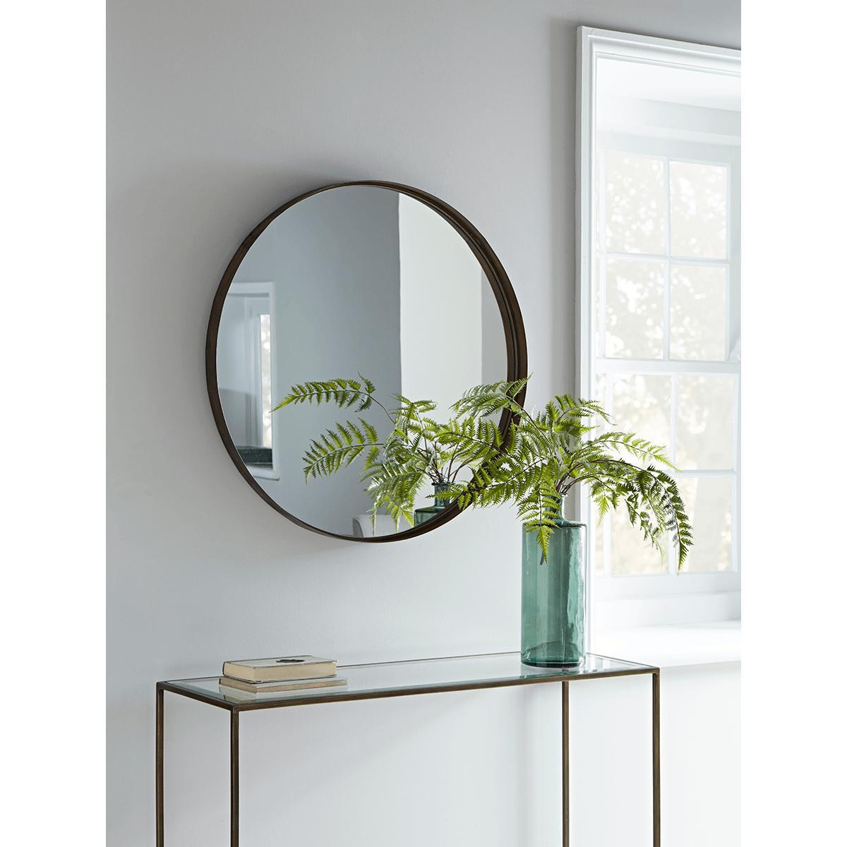 I love the round burnished frame on this mirror - it adds a touch of understated sophistication that works well in both contemporary and traditional interiors. Its warm, metallic tone makes it versatile enough to complement the colours and textures in your space, from sleek modern schemes to cosy, eclectic rooms. Practical styling tips include hanging it above a console table or sideboard to create an inviting entryway focal point, or tightly grouping it with smaller wall art for a curated gallery look. Its clean, circular shape also helps to soften sharp angles in a room, making spaces feel more harmonious. This mirror is particularly effective in areas where light bounces and adds brightness, especially beside large windows or in smaller rooms where it can help to visually expand the space.