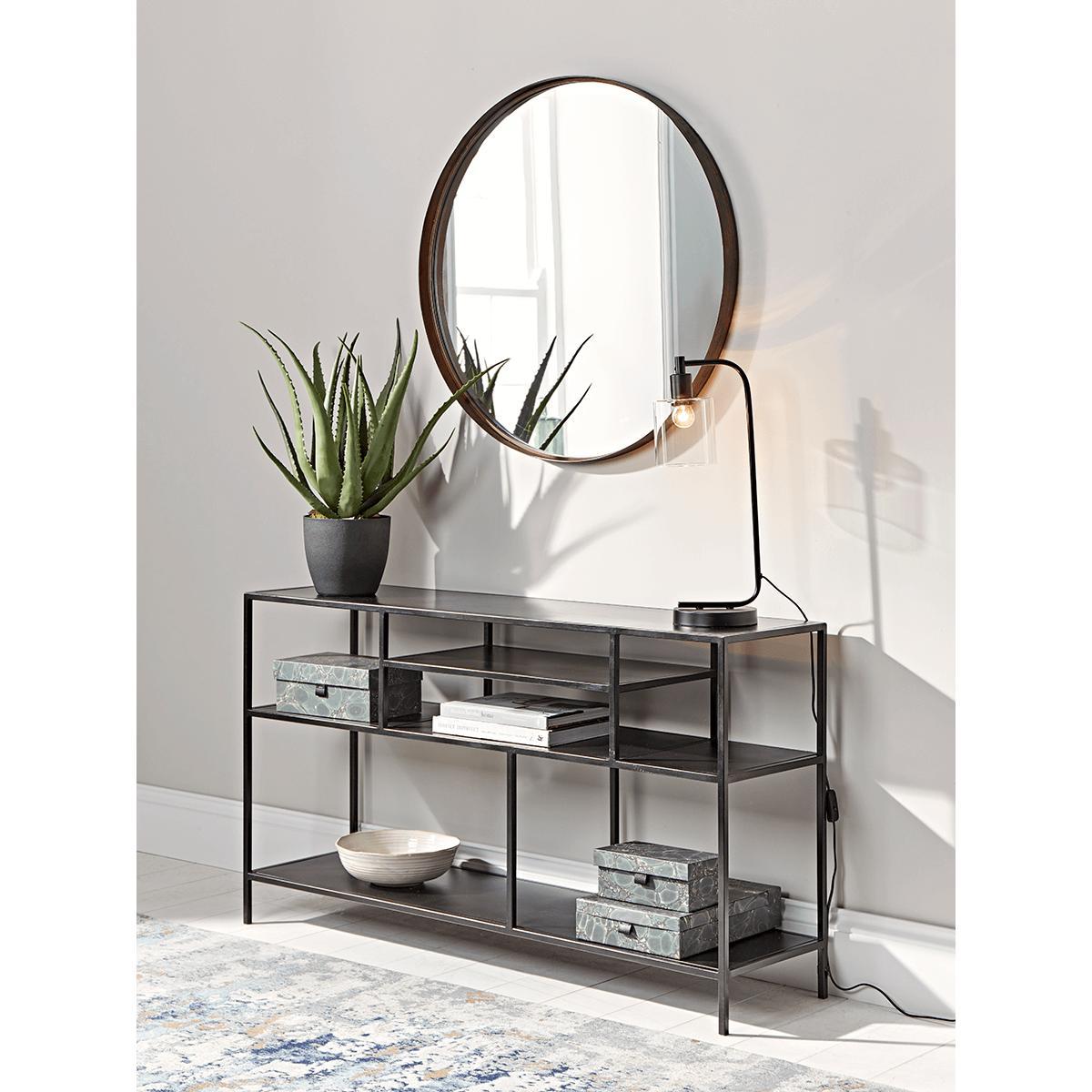 Perfectly simple and elegant, with a deep, slender burnished bronze-black frame and large mirrored surface, our statement mirror will reflect the light from all directions, adding an element of space to your room. Display above a console, bench or dressing table to create a picture perfect display.