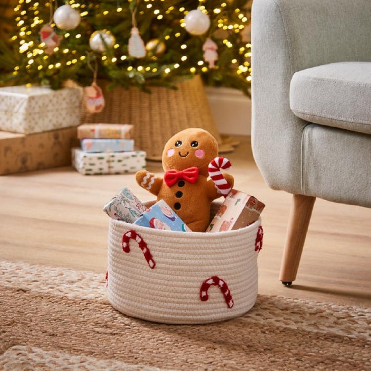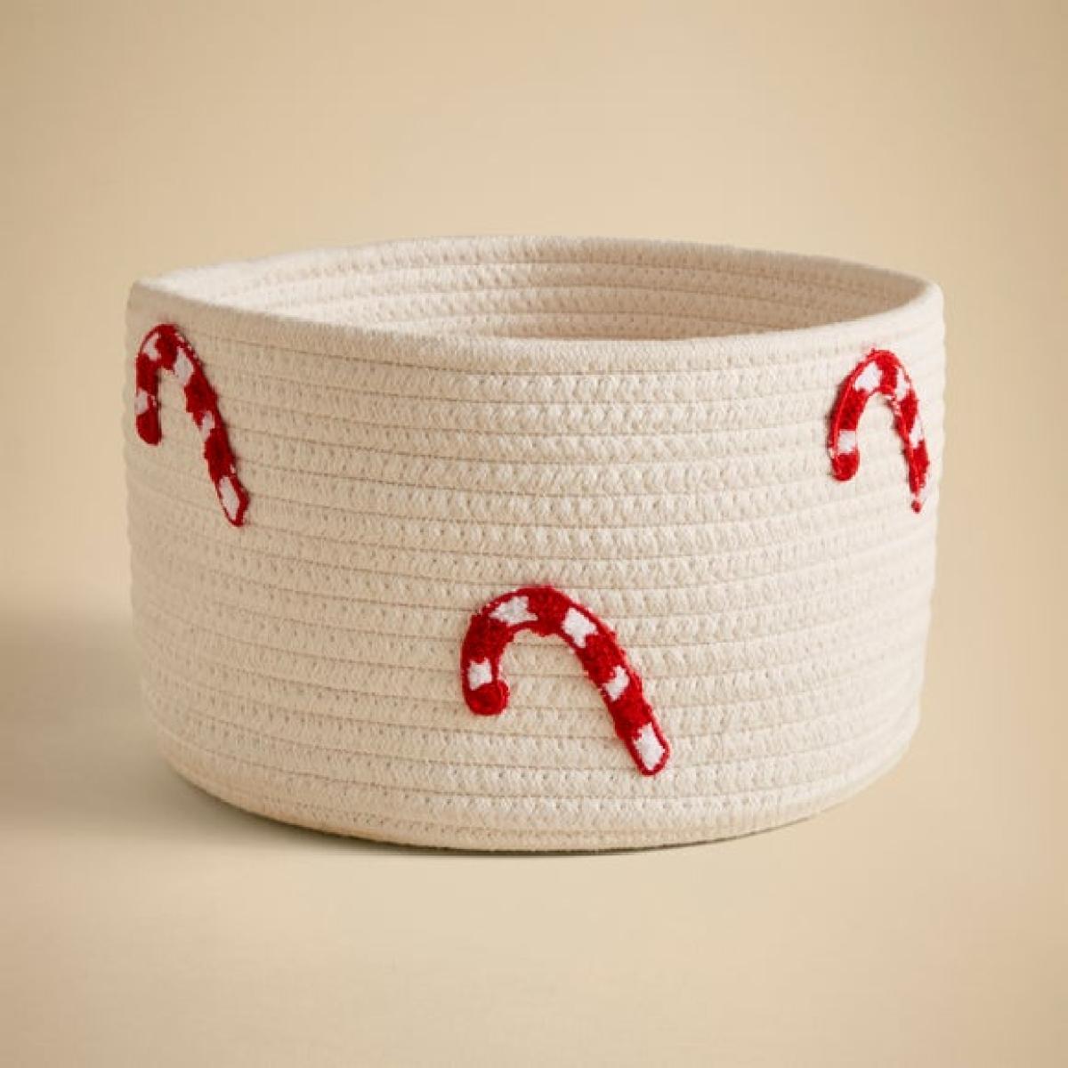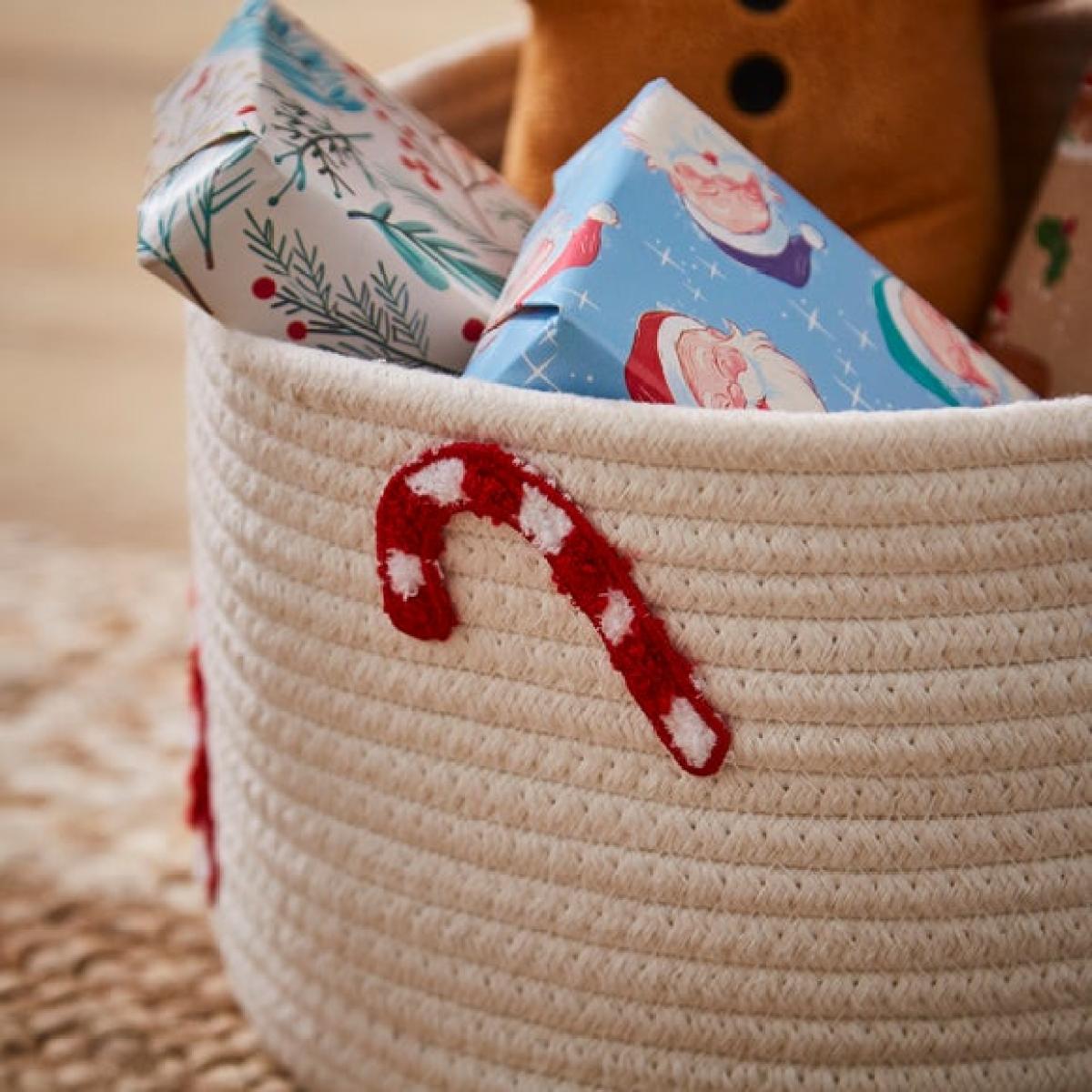 * Charming candy cane pattern * Durable * Perfect for storing all your festive goodies Tidy up in festive style with our Round Candy Cane Basket, the perfect pick for storing all your seasonal bits and bobs. Whether it's wrapping paper, craft suppliers or a thoughtful gift waiting to be given, this charming basket keeps it all in one lovely place. Designed with sweet candy cane details, it adds a playful touch of Christmas to any corner. Crafted to be durable, it's as practical as it is sweet. Easy to pop out when the season arrives, and just as easy to tuck away once it's done. A cheerful companion for all your holiday prep.