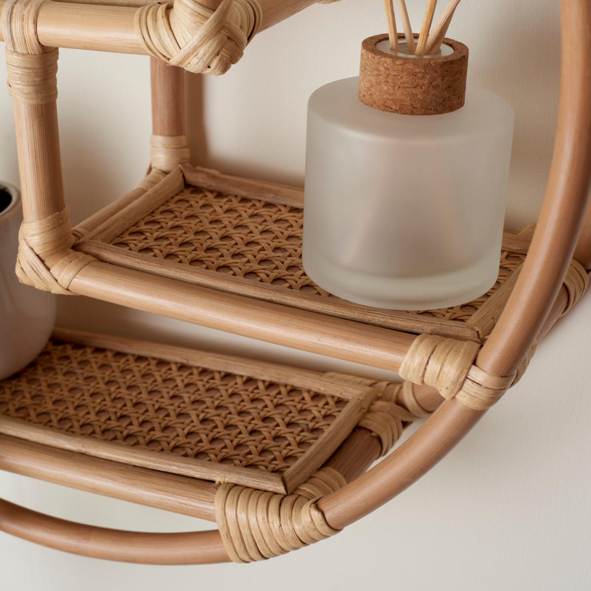 I really like this wall shelf - the round cane design makes it a stylish focal point that softens a space without overwhelming it. It works well in a variety of interiors, from boho and coastal schemes to more minimal or Scandinavian styles where natural textures are key. Practical styling tips include using it to display a mix of small plants, favourite books, or decorative objects to keep things airy and uncluttered. Its open design encourages visual lightness, so it’s ideal for smaller rooms or spaces where you want to add visual interest without blocking light. Overall, it’s a versatile piece that adds warmth and texture while remaining functional.