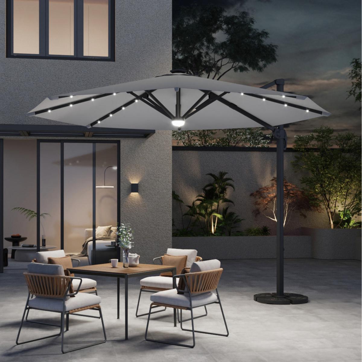 Round Cantilever Parasol Set with LED Lights and Rotating Base - Light Grey