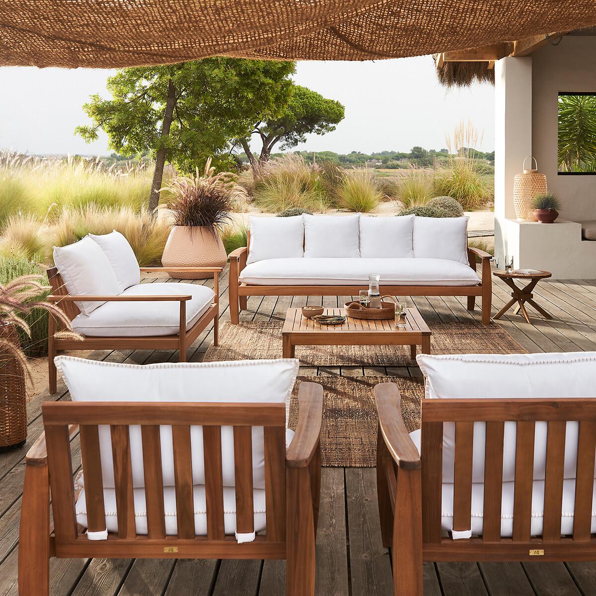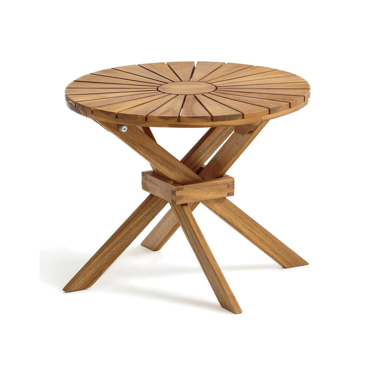 In 2 versions, the Jakta side table brings sunshine to terraces and gardens in all weathers! Made of acacia, a sturdy wood. Product Details • FSC® certified acacia. • Teak version: tabletop and base in teak-stained wood • Two-tone version: teak stained top, matt black legs. Quality Info • Acacia is a wood that offers good mechanical properties (good resistance to insects and fungi) and is resistant to bad weather (alternation of dry and humid periods). Care Advice • To maintain your oiled acacia furniture, if moss appears, simply wash your furniture in clear water mixed with a little bleach-based detergent.. Rinse well and allow to air dry, then sand lightly. If you wish to oil your furniture, avoid the application of several coats which can irregularities in the colour.. Dimensions • Diameter: 50cm • Height: 40cmDelivery:. This product is sold ready to assemble, instructions attached. Available for home delivery. Note! Please check that all access points are large enough to accommodate your delivery (doors, stairs, lifts) • WOOD FROM SUSTAINABLY MANAGED FORESTS. FSC® certified wood comes from forests that are environmentally, socially and economically well managed. Parcel Dimensions • 1 parcel • L53 x H7 x D52cm. 5kg
