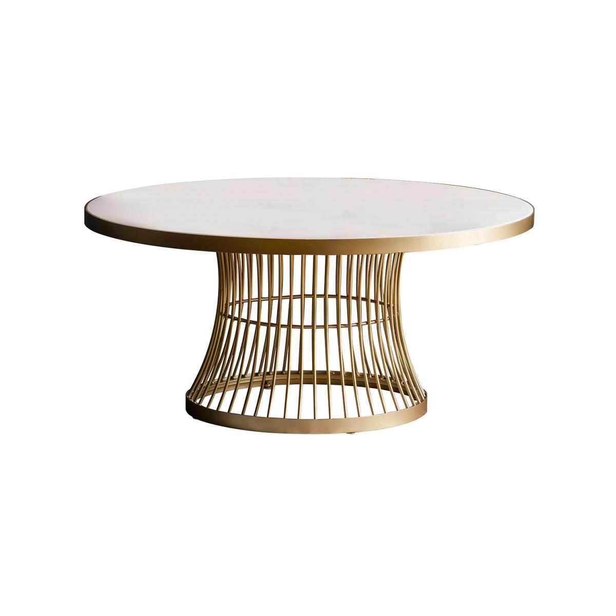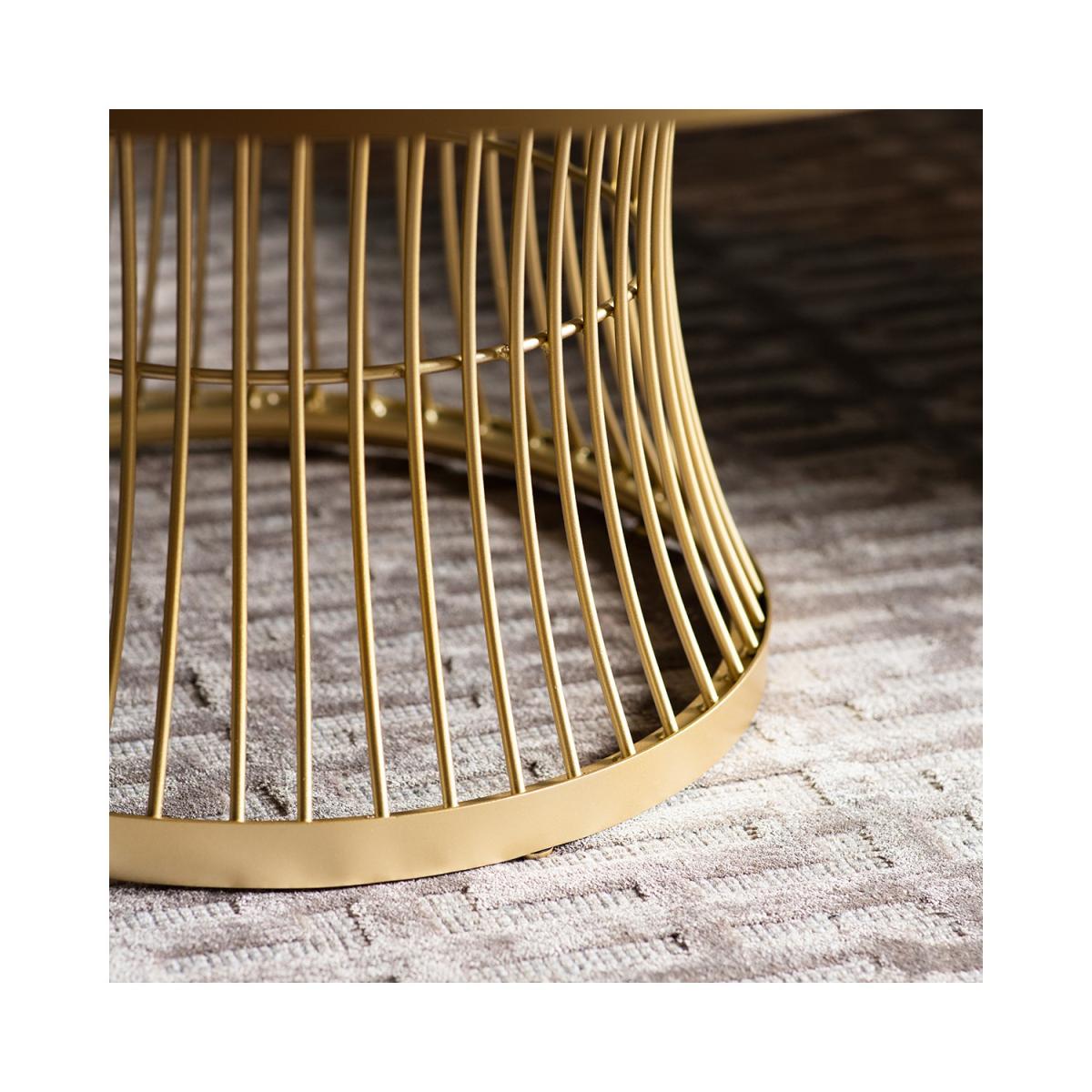 I’m a fan of this gold-base marble-top coffee table because it combines a sculptural presence with practical surface space. Its warm veining and metallic frame sit comfortably in contemporary, mid-century or art-deco schemes - pair it with muted upholstery for a subtle luxe look or introduce darker tones for a more dramatic contrast. Styling tip: keep accessories to a minimum so the table remains the focal point. A low-profile ceramic vase, a couple of coffee-table books and a decorative tray in complementary metals will balance out the marble’s polish without overcrowding. For co-ordination, echo the gold finish in lighting fixtures or side-table accents.