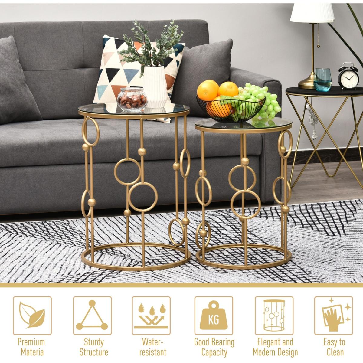 Round Coffee Tables Set of 2, Gold Nesting with Tempered Glass Top - Gold