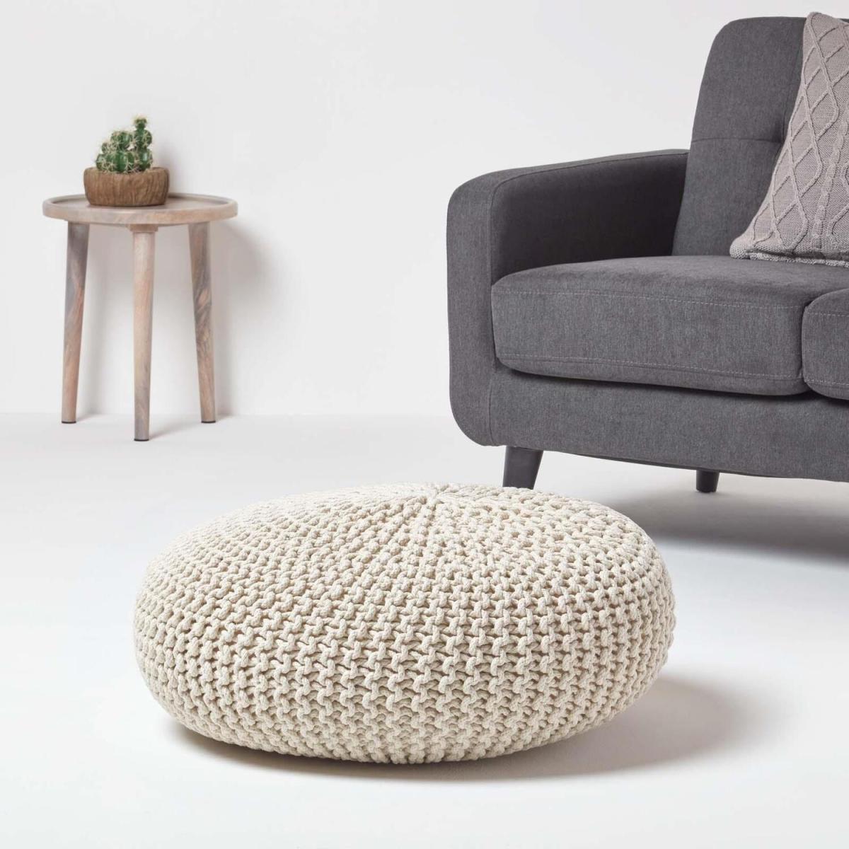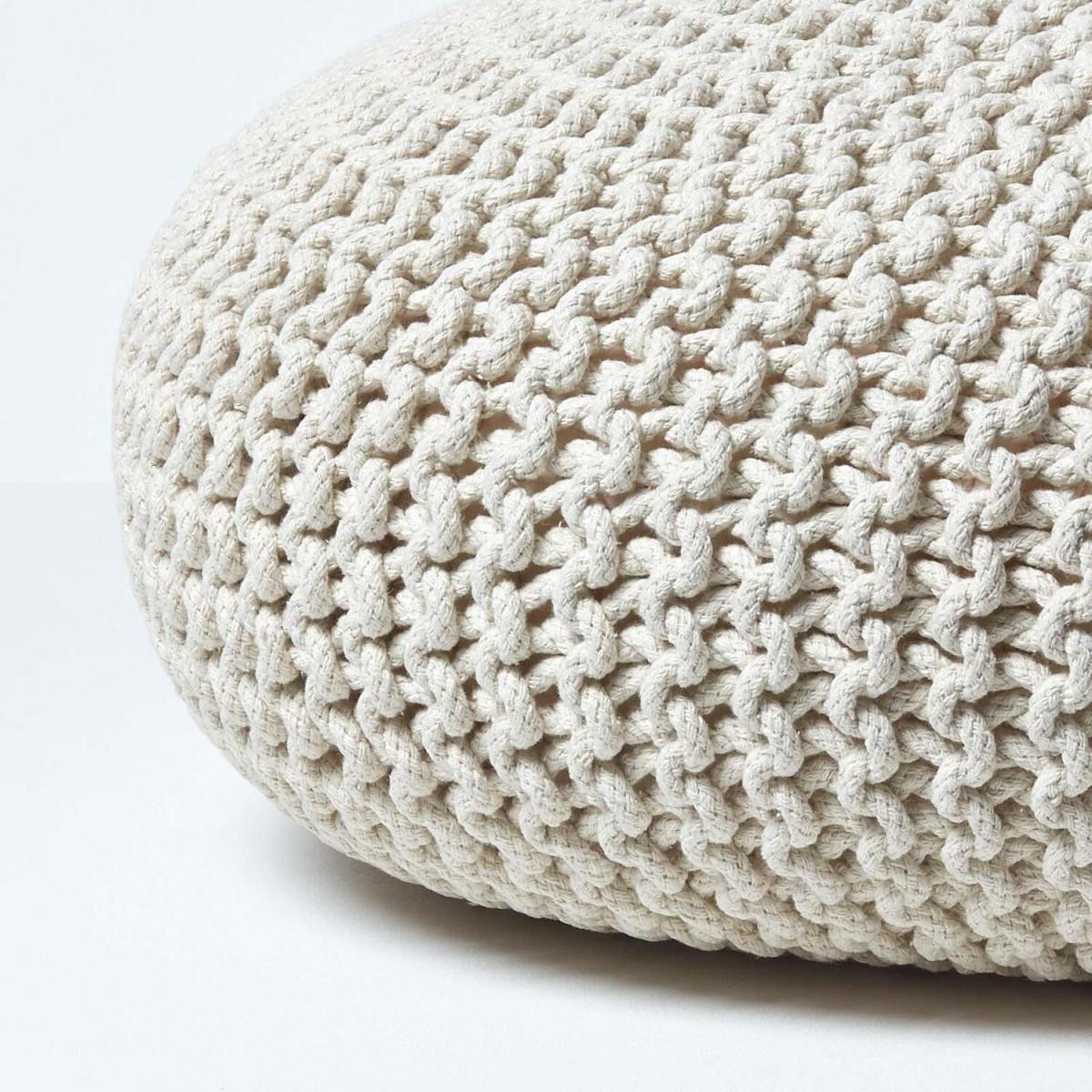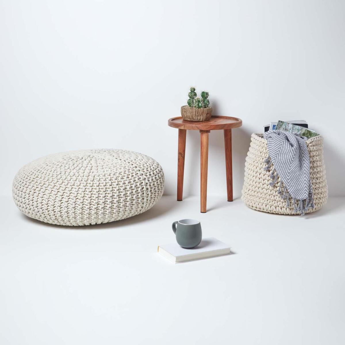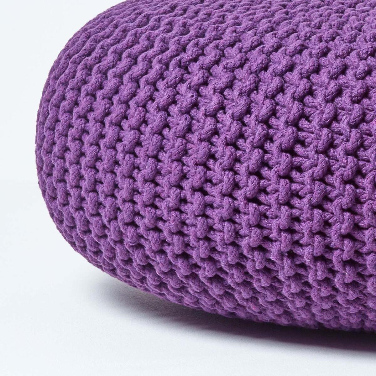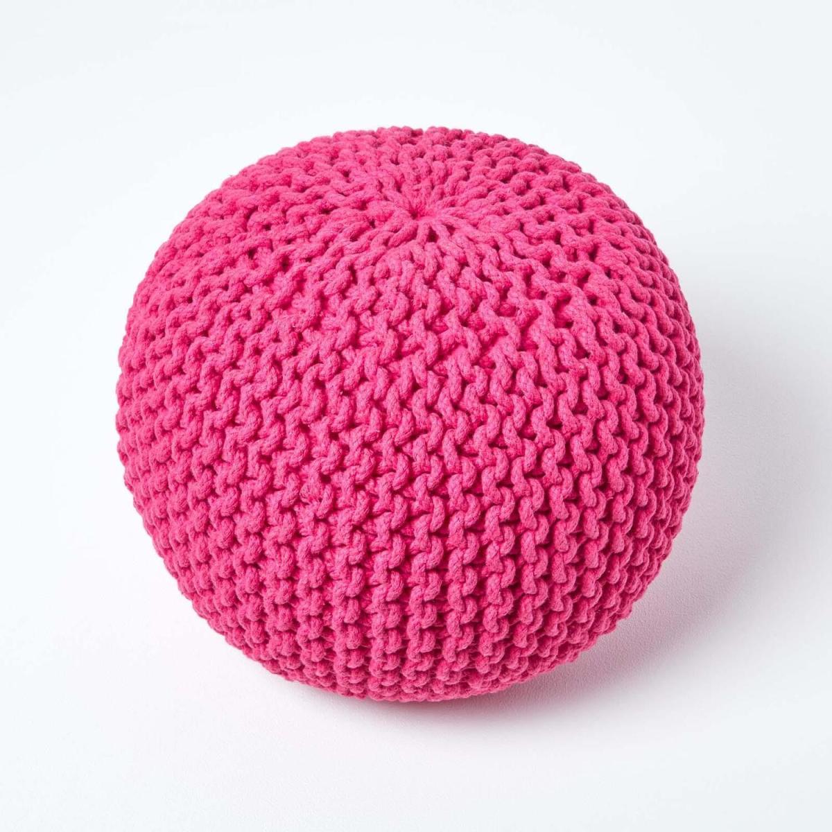 Homescapes has by far the largest range of knitted pouffes and cubes in the UK and possibly in Europe. A selection of 5 contemporary colours and two different shapes allows you a vast choice not available anywhere. These knit pouffes and knitted large floor cushions have been hand-made from 100 sturdy cotton and filled with robust polystyrene beads. The filling ensures that the pouffes do not lose their shape while sitting on them. They are very colourful, fashionable and true all-rounders. They can, for example, be used as make shift stools and occasional seats for visitors, decorative floor cushions or comfortable footstool. These would look equally at home in a Nordic setting along with the rest of your warm soft furnishings, or in a sleek modern setting, providing a splash of colour. You could have a combination of colours, sizes and shapes in your living room or any other room to inject a quick life or freshness. Their simplicity and colours make them modern, and the hand-knitted ruggedness also make them most suitable to traditional settings. They make a lovely addition as a child's seat in a nursery and certainly would withstand active children playing. They could even become the new favourite spot of your dog or cat. Or why not put two different coloured pouffes on top of each other to create a very special decorative accessory and add some height to your seating position Some interior decorators have coordinated Homescapes hard wood coffee tables with these colourful knitted pouffes and large floor cushions to bring out an eclectic interior setting. At the most affordable and unbeatable price, it's a great addition to have in your home.