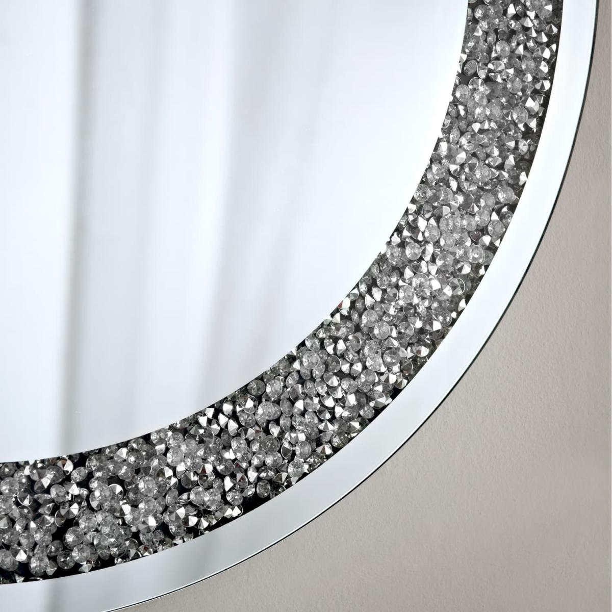 Round Crushed Jewel Mirror, Hang this stunning mirror on a wall at home. Features a stunning crushed jewel design. Colour Silver Dimensions 60cm Approx.