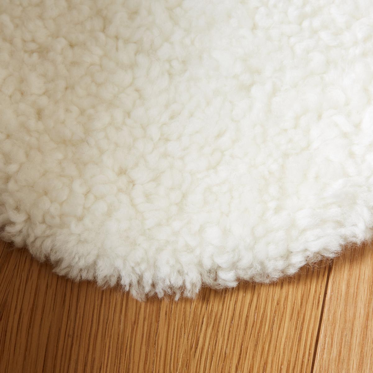 Round Curly Wool Sheepskin Seat Pad Ivory