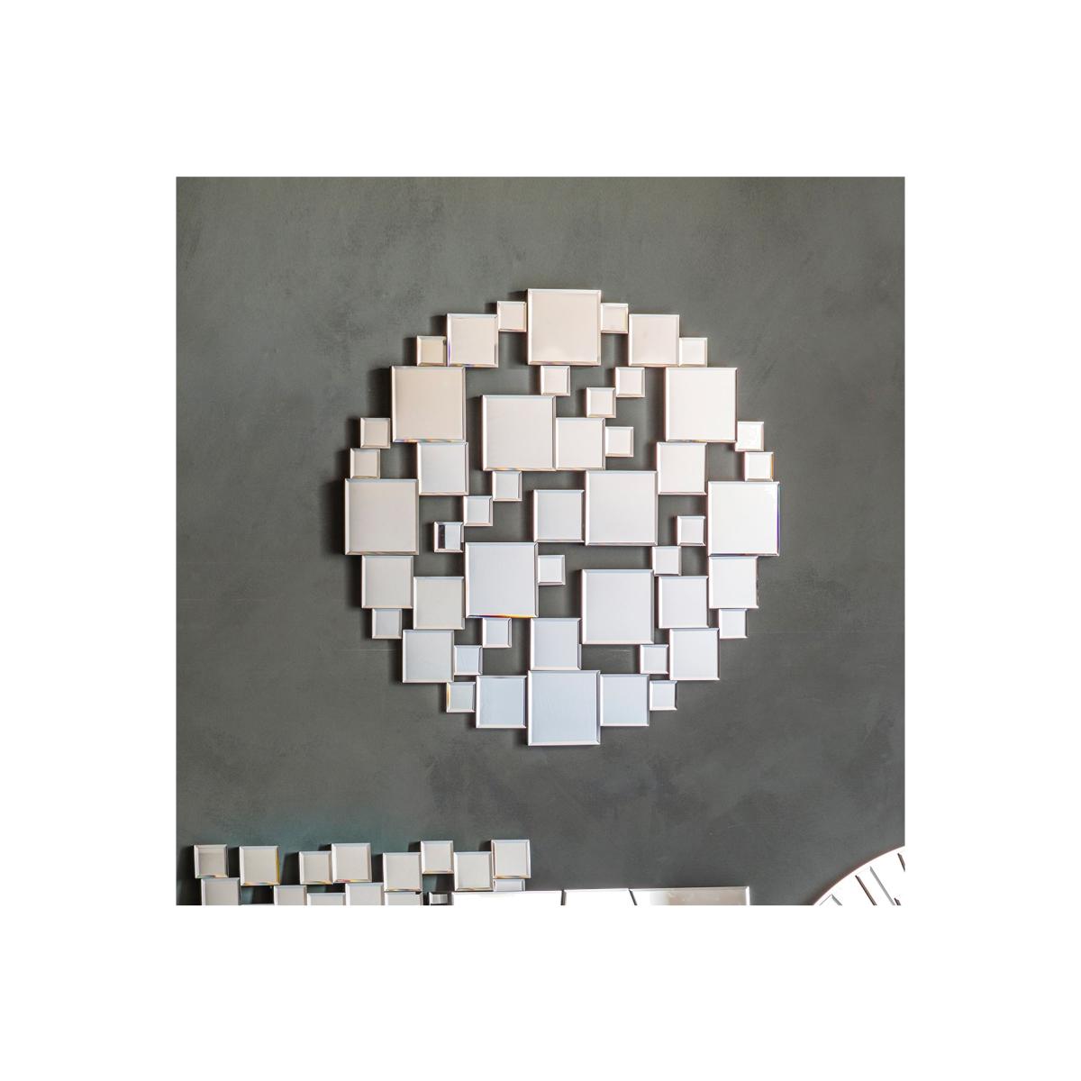 Dimensions W80 x H80 x D2 cm Features. Eye-catching modern design. Mirrored squares creating a circle Wall hanging. Perfectly suited to any room in the home Assembly not required..