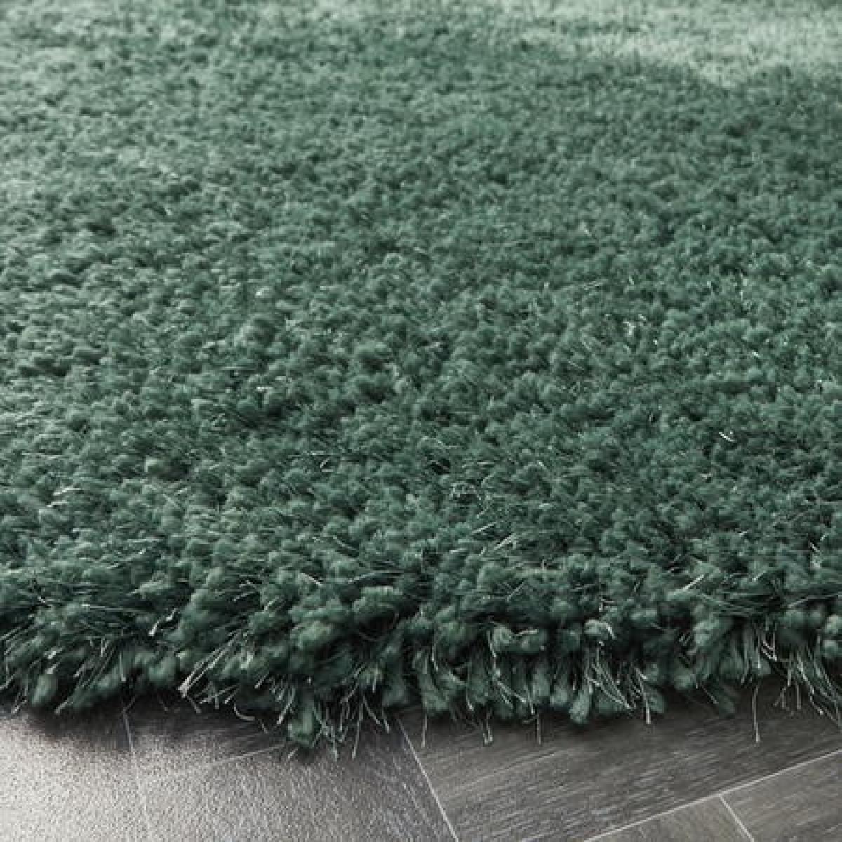 I love this round dark green shaggy rug for adding texture and colour to a variety of interiors. Its deep green hue works well in contemporary, minimalist spaces as a statement piece, but can also complement more traditional decor when paired with wooden furniture or neutral tones. The shaggy texture brings a cosy, inviting feel, making it ideal for living rooms or bedrooms. To style it effectively, consider layering with natural fibres like linen or cotton textiles, and keep other accessories simple to let the rich colour and lush texture stand out. It's practical for softening hard flooring and adds visual interest without overwhelming a space.