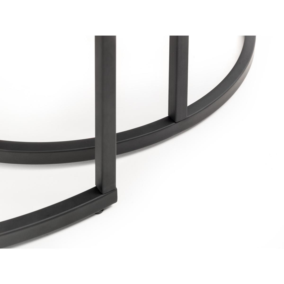 Larger Table Dimensions W80 x H50 x D80 cm Smaller Table Dimensions H40 x W 45 x D 45cm. The Bellini Round Nesting Coffee Table ensures long lasting durability crafted from black coated metal and walnut foil finish. This set of two coffee tables boast a contemporary stylish design with an industrial feel. Ensuring a space saving solution the coffee tables slot together as and when they are in use Features. Nest of 2 coffee tables. Modern industrial design suitable for a range of décor Offering a space saving solution. Strong and durable construction Easy assembly..