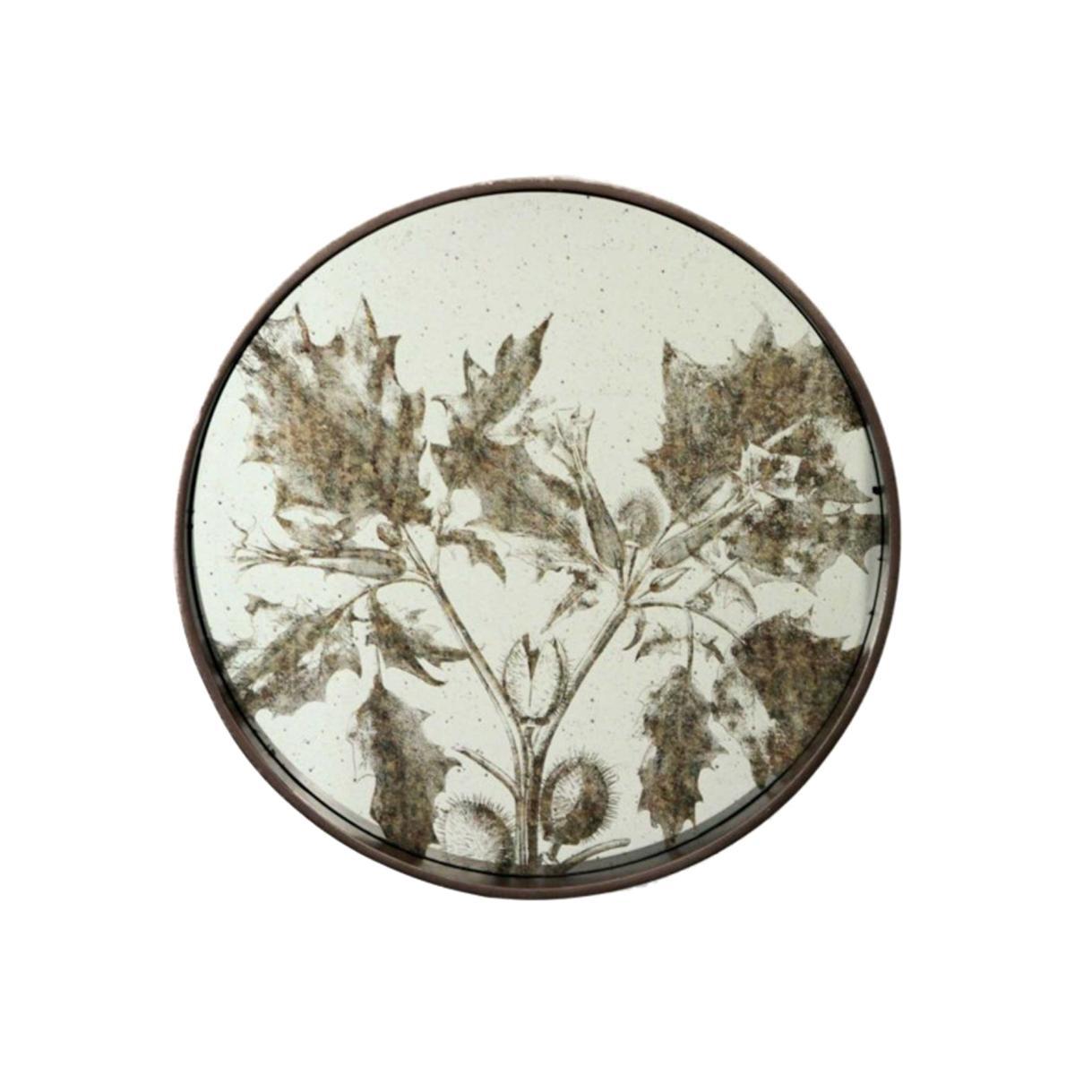 Design. Round Decorative Foliage Mirror, Antiqued.