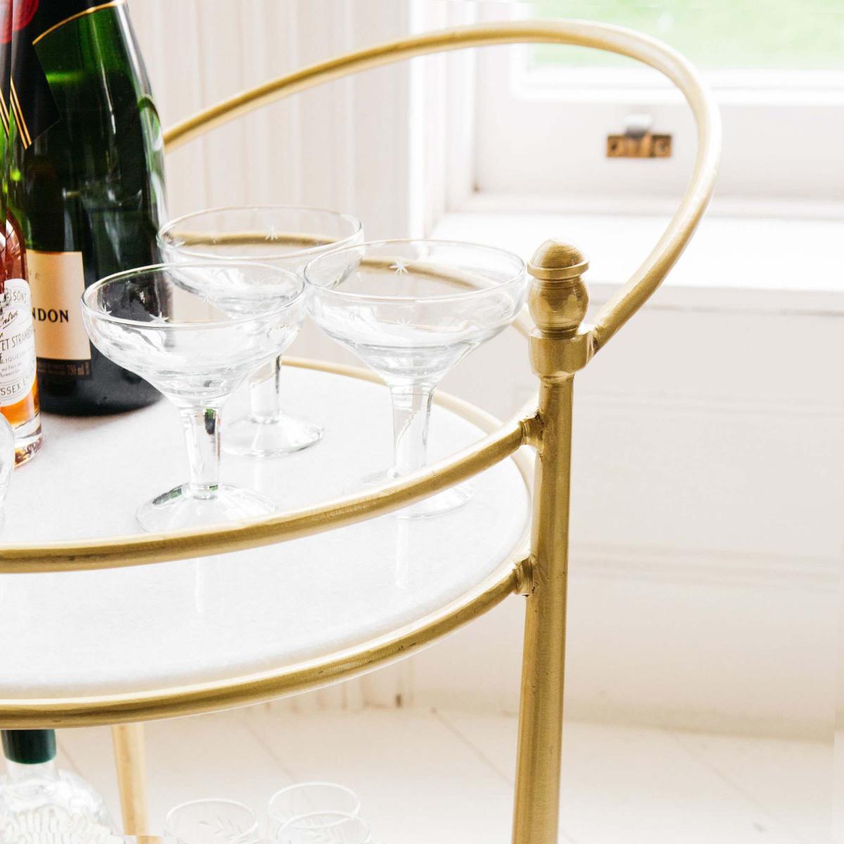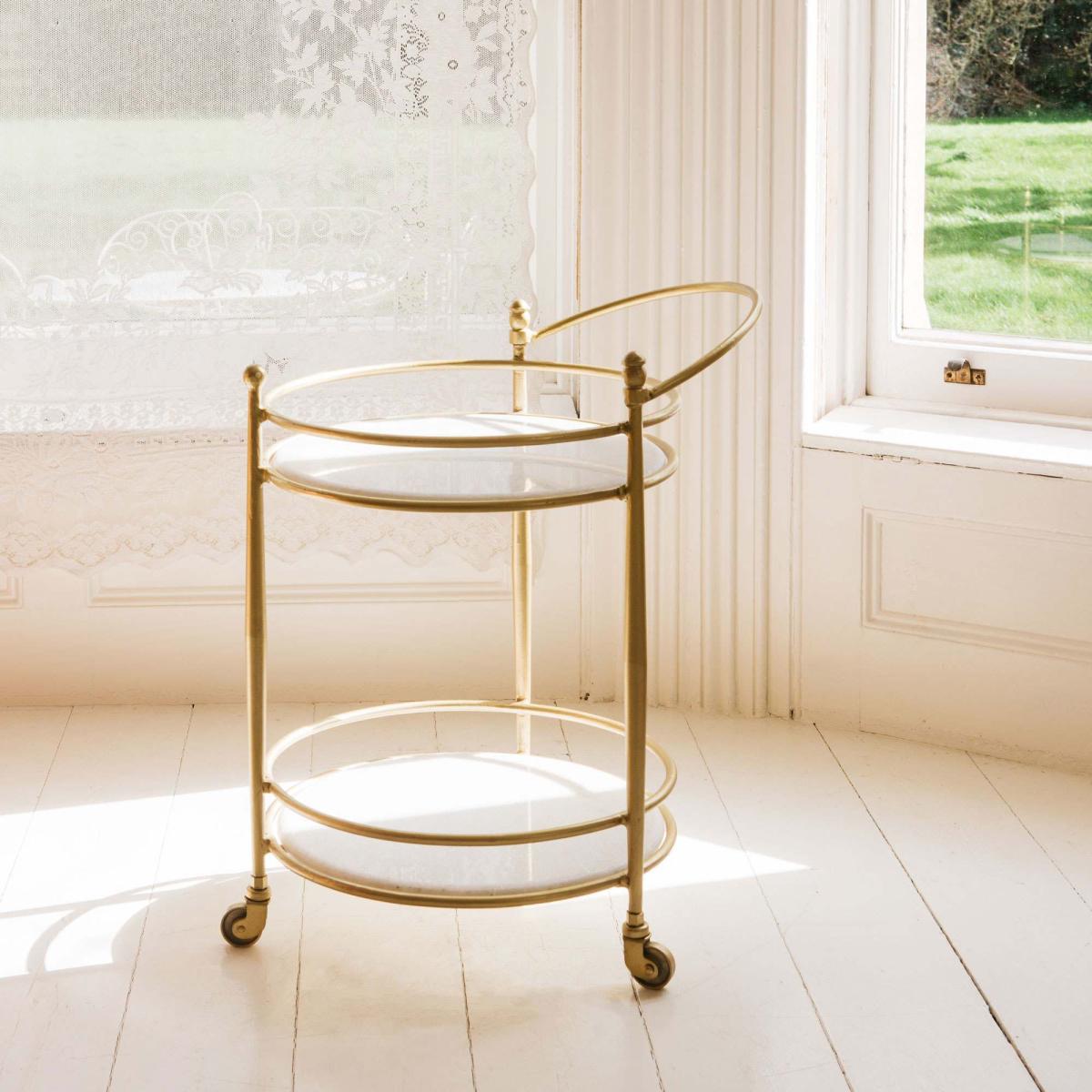 Round Drinks Trolley with Marble Shelves