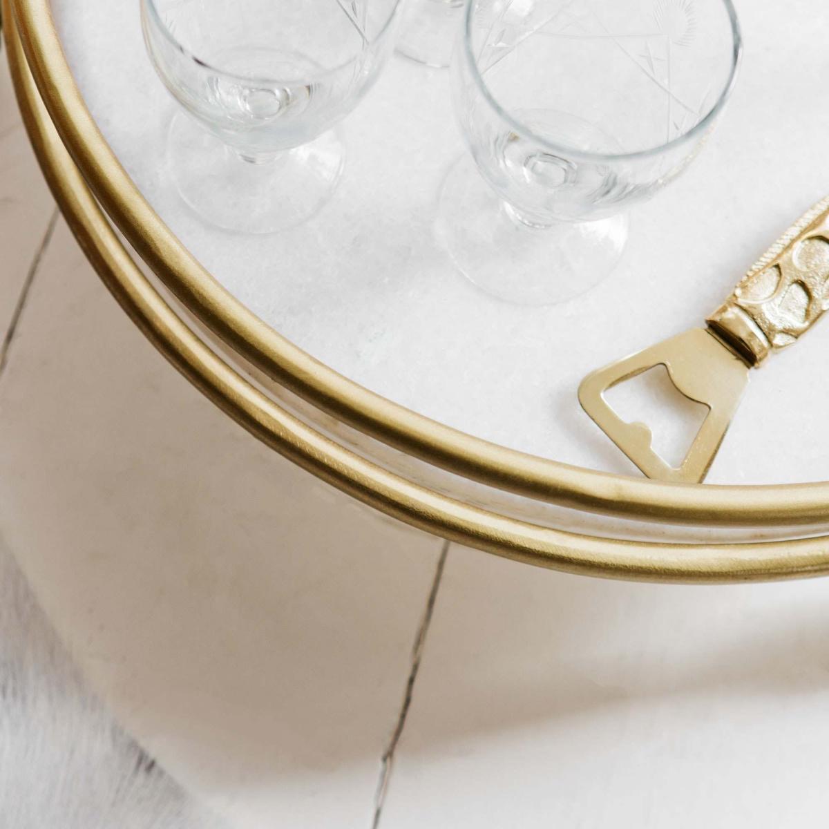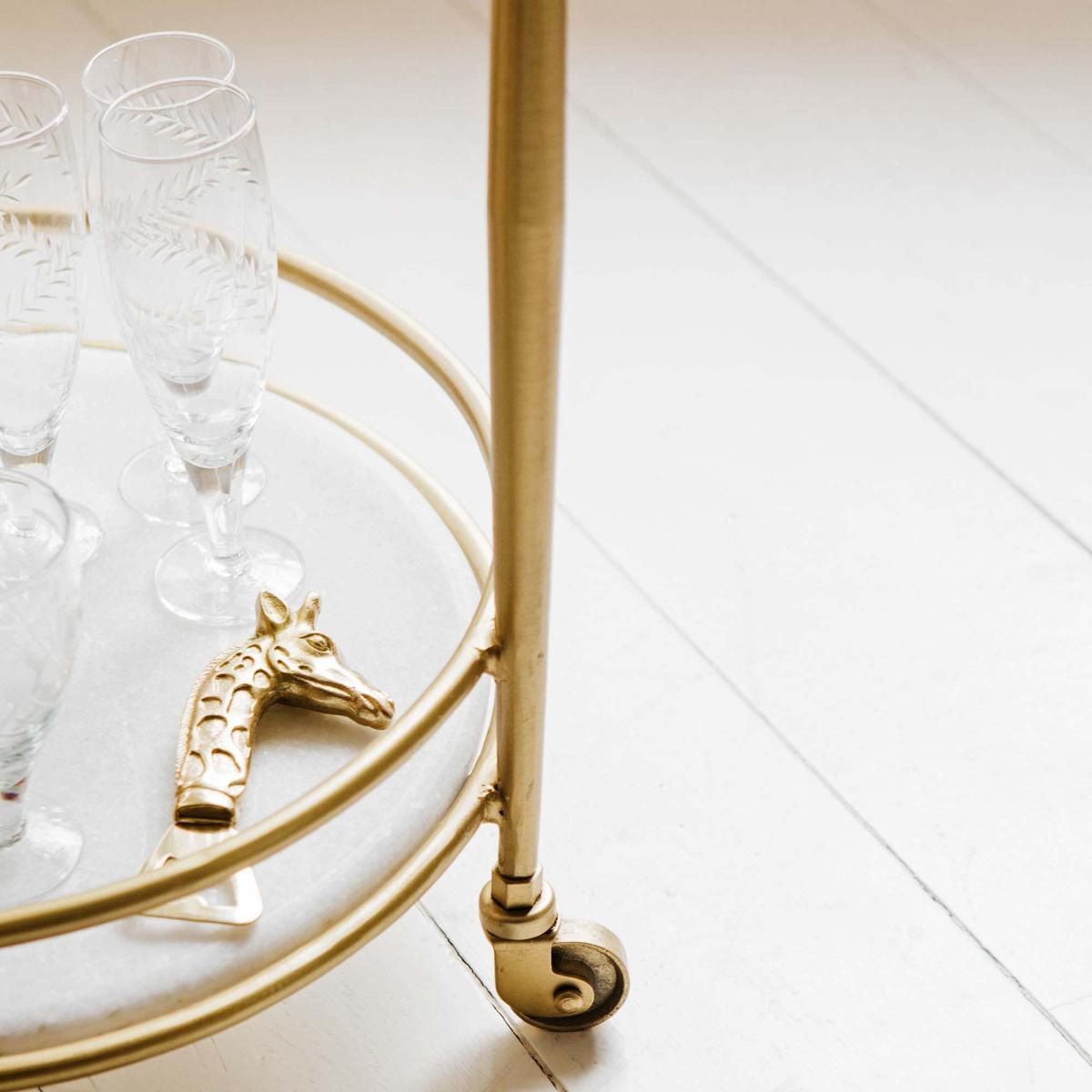 I love the round drinks trolley with marble shelves for its versatile, timeless appeal and practicality. It works particularly well in both classic and contemporary interiors, adding a touch of elegance without feeling overly formal. Its compact size makes it ideal for small spaces or as an eye-catching accent piece in open-plan settings. For styling, try pairing it with glassware, decorative bottles, or fresh flowers to create a welcoming setup. For a more lived-in look, stack some stylish books or add a few carefully chosen accessories to keep it feeling curated but not cluttered. Its mobility also makes it perfect for entertaining, allowing you to reconfigure your space easily.