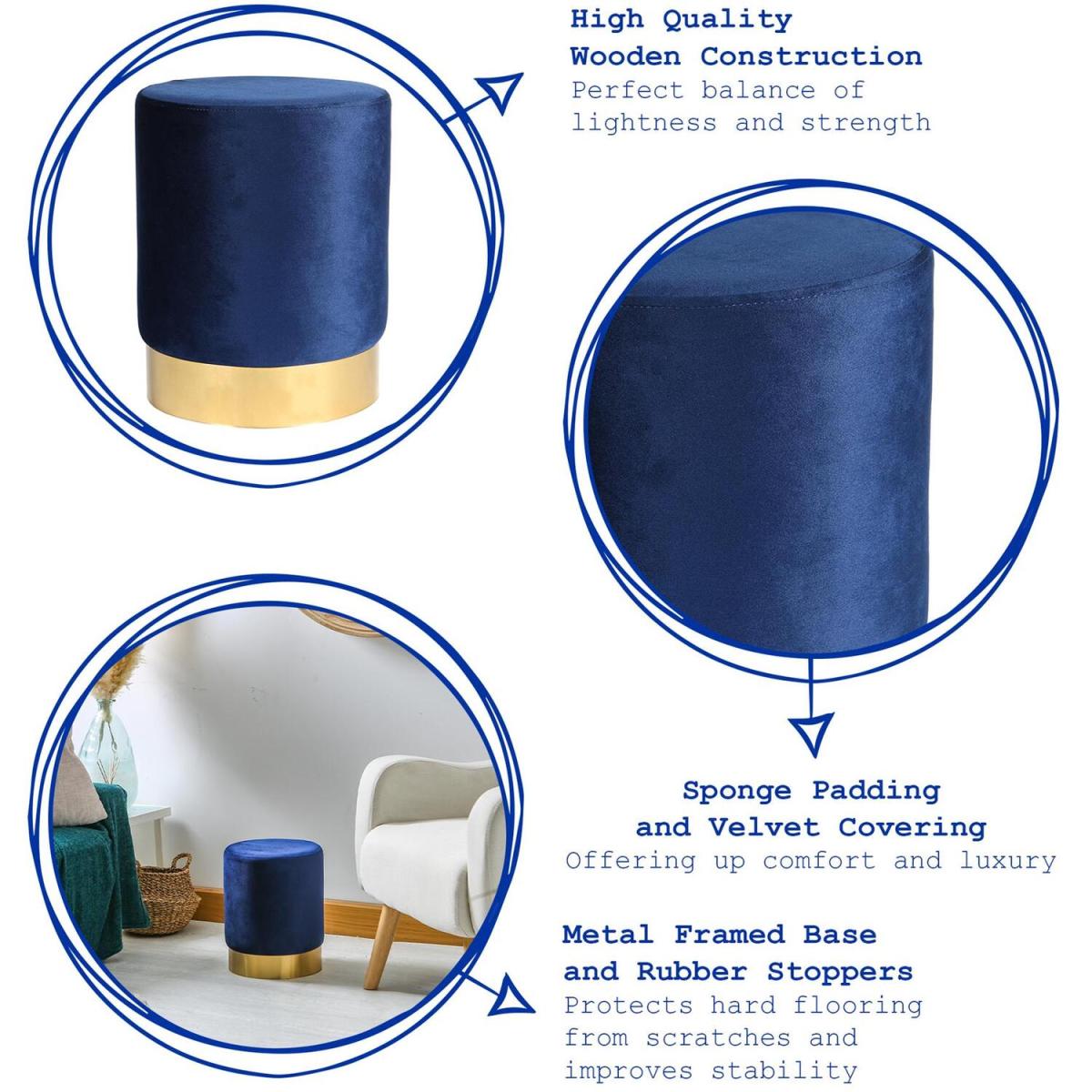 This Round Velvet Pouffe from Harbour Housewares offers great additional seating to any lounge, bedroom or study, whilst also serving as a beautifully decorative piece to add to your interior. Constructed from high quality wood, these pouffes possess the perfect combination of lightness and stability, and the raised metal base and rubber stoppers keeps hard floor surfaces protected from scuffs and scratches. A layer of foam padding covers the stool, ensuring lasting comfort and the soft velvet covering creates the ultimate level of luxury. The petite shape makes this stool ideal for tucking under a desk or vanity table, creating a convenient space-saver. Shop the collection and choose from a range of four elegant tones and two stool styles to fit your interior dcor pursuits.