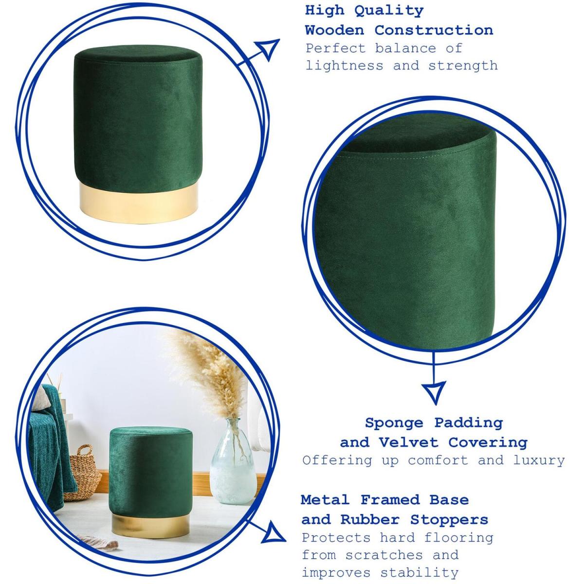 This Round Velvet Pouffe from Harbour Housewares offers great additional seating to any lounge, bedroom or study, whilst also serving as a beautifully decorative piece to add to your interior. Constructed from high quality wood, these pouffes possess the perfect combination of lightness and stability, and the raised metal base and rubber stoppers keeps hard floor surfaces protected from scuffs and scratches. A layer of foam padding covers the stool, ensuring lasting comfort and the soft velvet covering creates the ultimate level of luxury. The petite shape makes this stool ideal for tucking under a desk or vanity table, creating a convenient space-saver. Shop the collection and choose from a range of four elegant tones and two stool styles to fit your interior dcor pursuits.