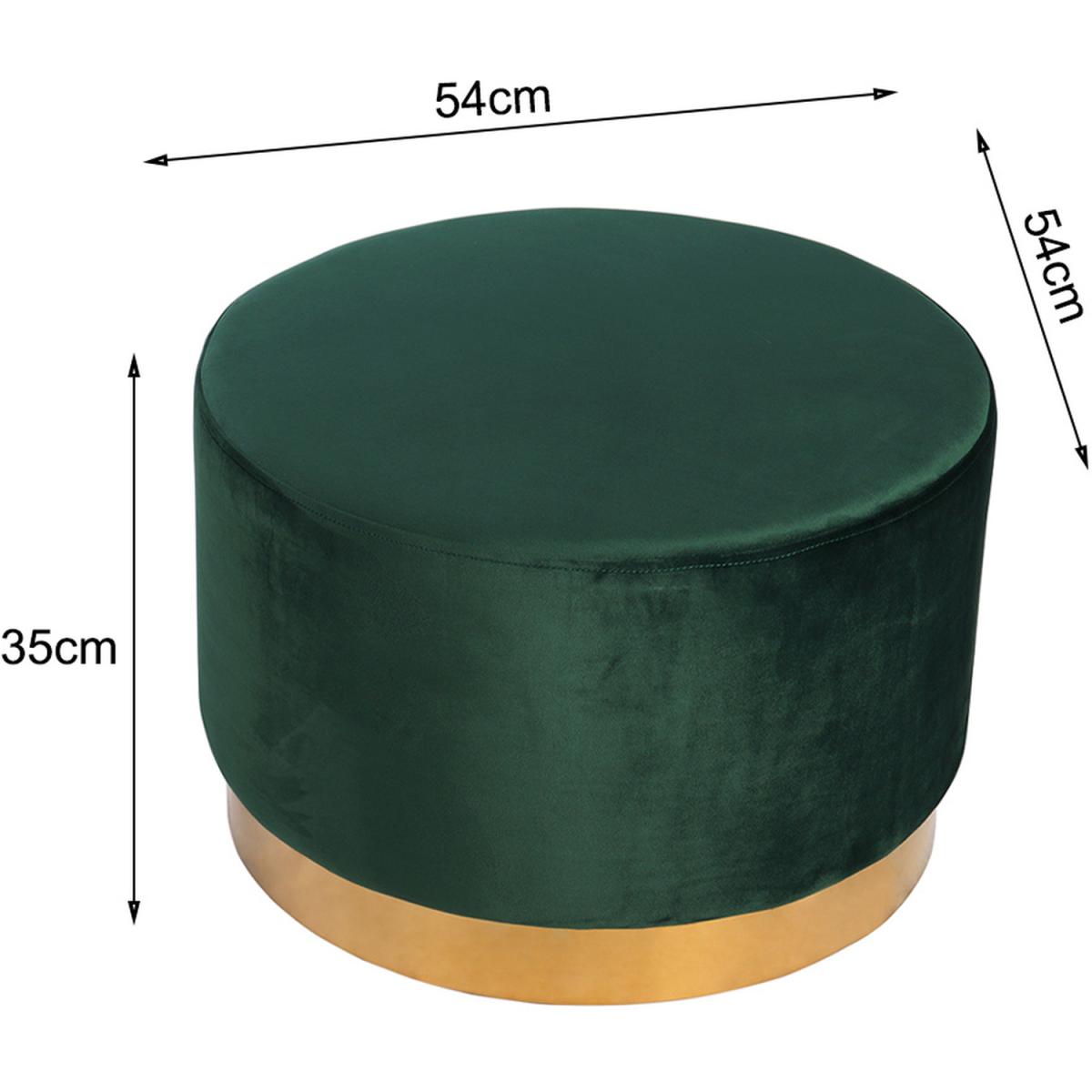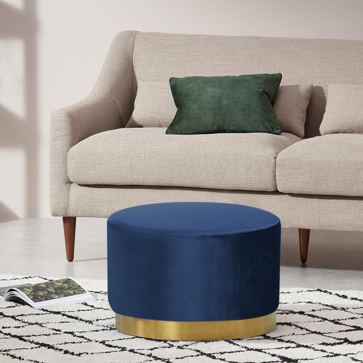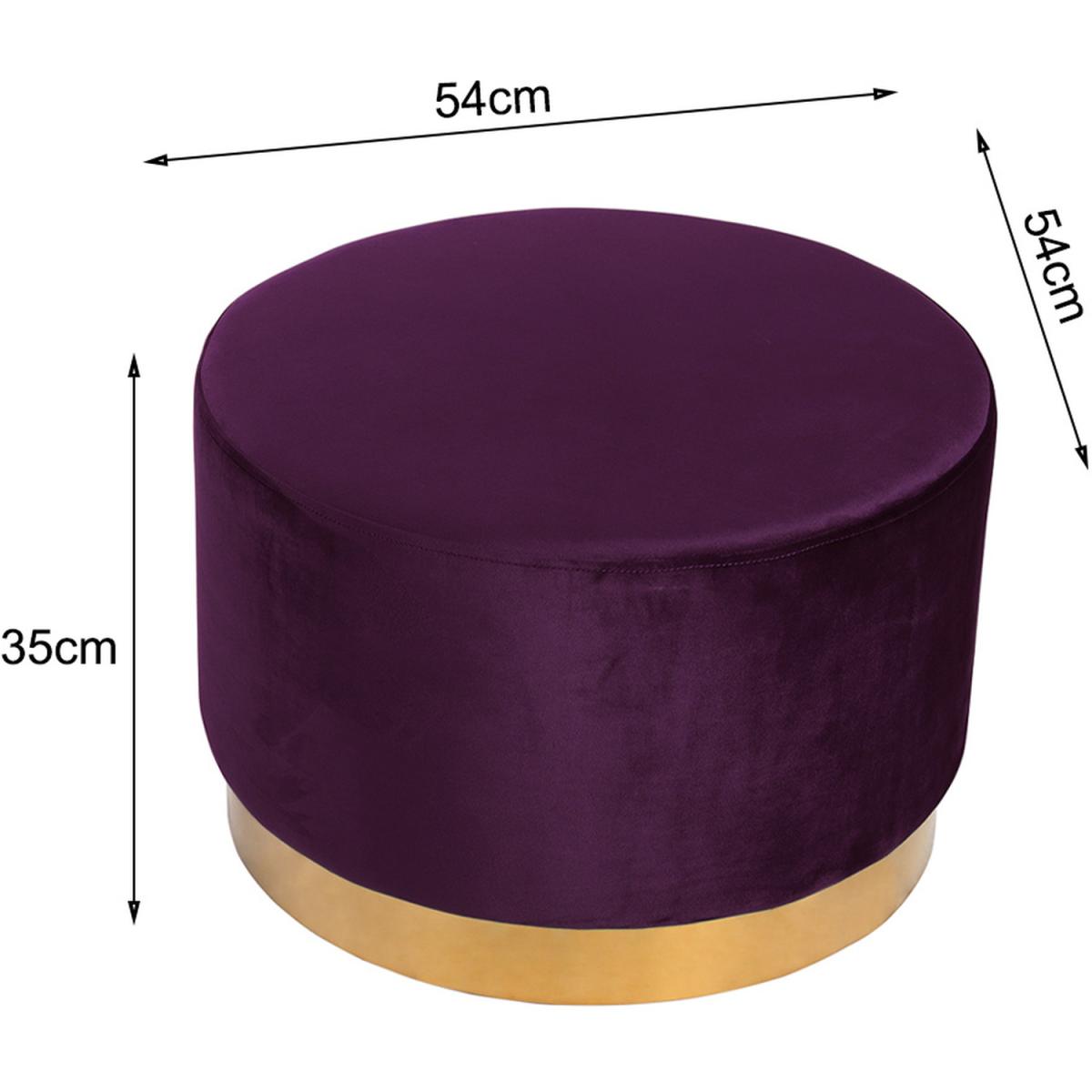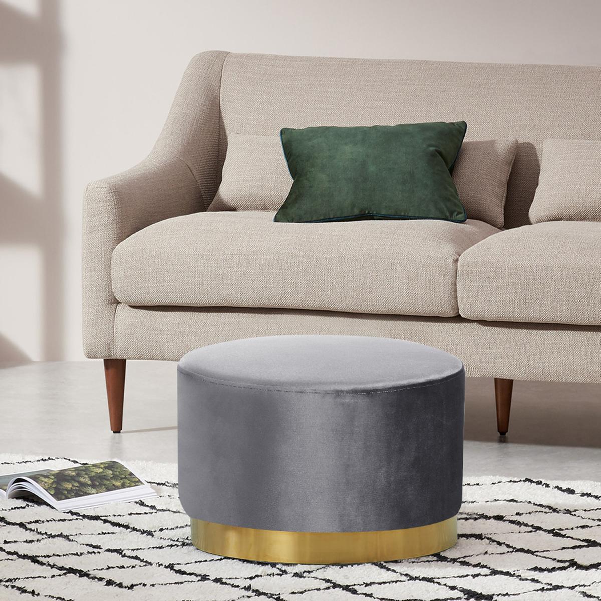 The round shaped ottoman is upholstered with a soft touching velvet fabric, padded with high quality foam and an attractive gold finish on the base. The velvet ottoman stool is great for the living room, bedroom, dressing room, office or study. Perfect for use as a footrest stool, side table or as extra seating for guests.
