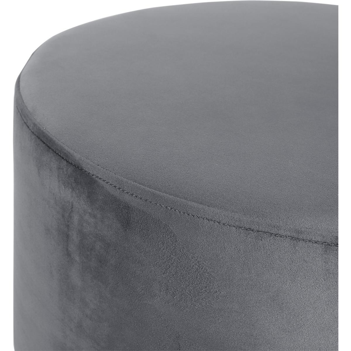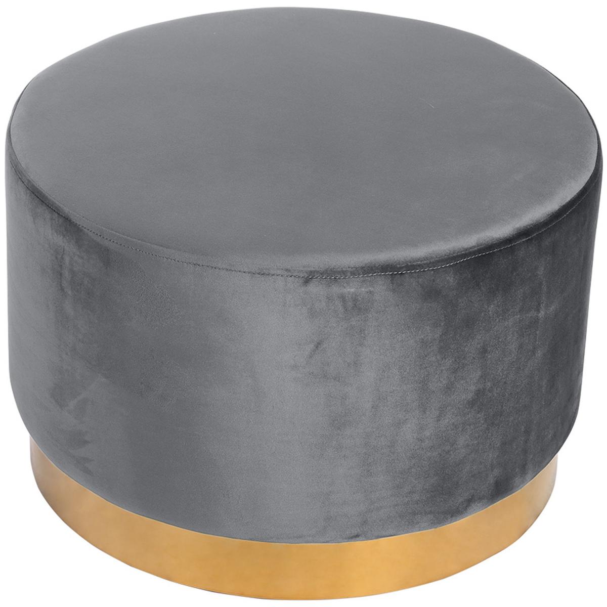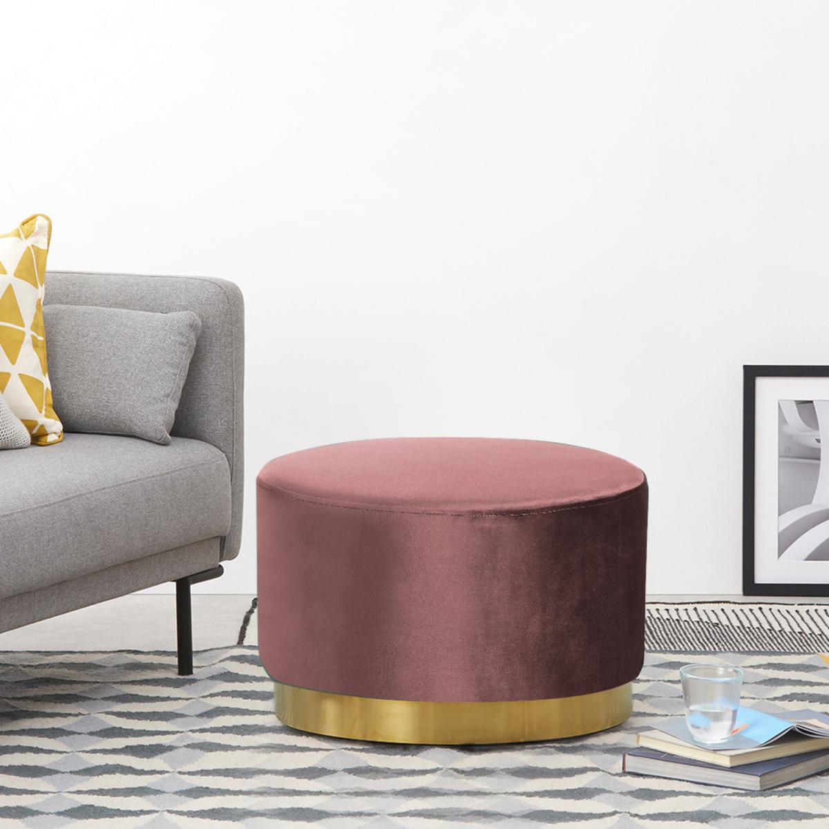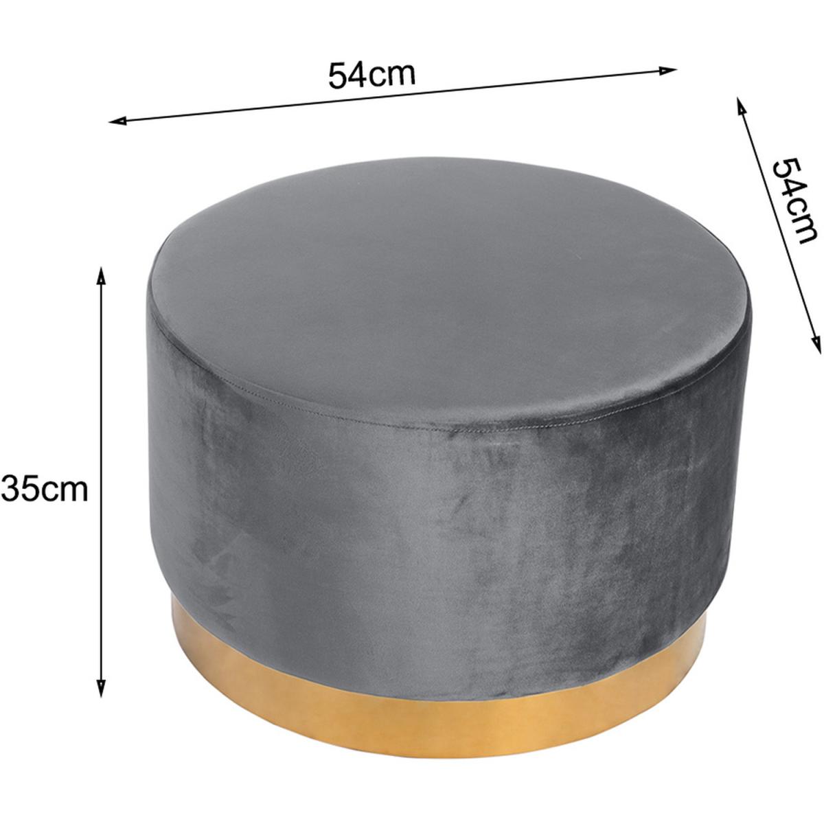The round shaped ottoman is upholstered with a soft touching velvet fabric, padded with high quality foam and an attractive gold finish on the base. The velvet ottoman stool is great for the living room, bedroom, dressing room, office or study. Perfect for use as a footrest stool, side table or as extra seating for guests.