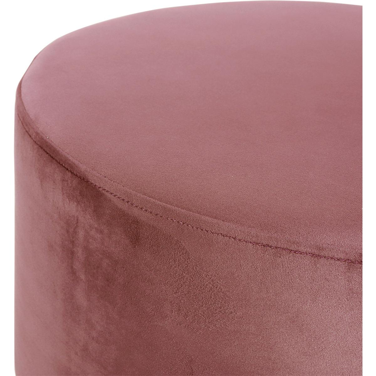 I love this pink footstool for its bold colour and versatile shape, making it a great statement piece in both modern and eclectic interiors. It works particularly well with neutral sofas and muted colour schemes, adding a pop of colour and a touch of luxe with its velvet finish. Practical styling tips include pairing it with a matching or contrasting throw to boost its visual appeal, and using it as both a footrest and an extra seat when needed. The gold base adds a subtle glamour that suits contemporary, glam, or Art Deco-inspired schemes. Its round form complements soft, curved furniture styles and can be easily integrated into cosy corner setups or as an accent piece in a larger living space.