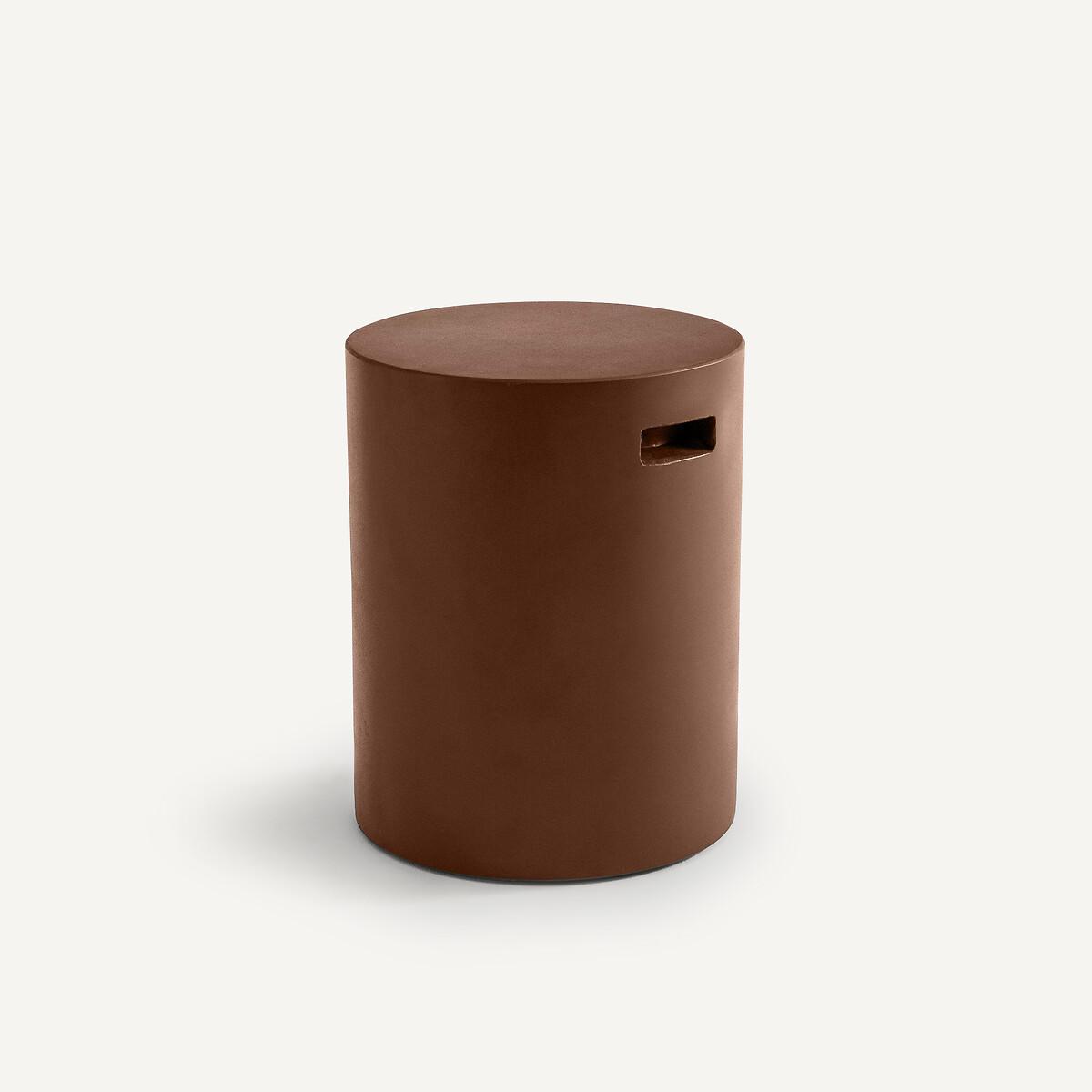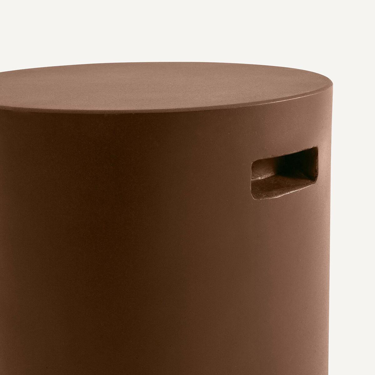 The Raskin side table has an irregular cylinder shape and handles which make it easy to move. Its light yet sturdy materials make it suitable for outdoor use. Product Details • Cement-look fibreglass. Quality Info • Handcrafted, each piece is unique, the fibreglass-based material is moulded to obtain the desired shape, which gives it an irregular appearance and a texture perfectly suited to outdoor use.. Dimensions • Diameter 35cm • Height 45cm. Dimensions and weight of parcel • L44 x H52 x D44cm • 7.5kg