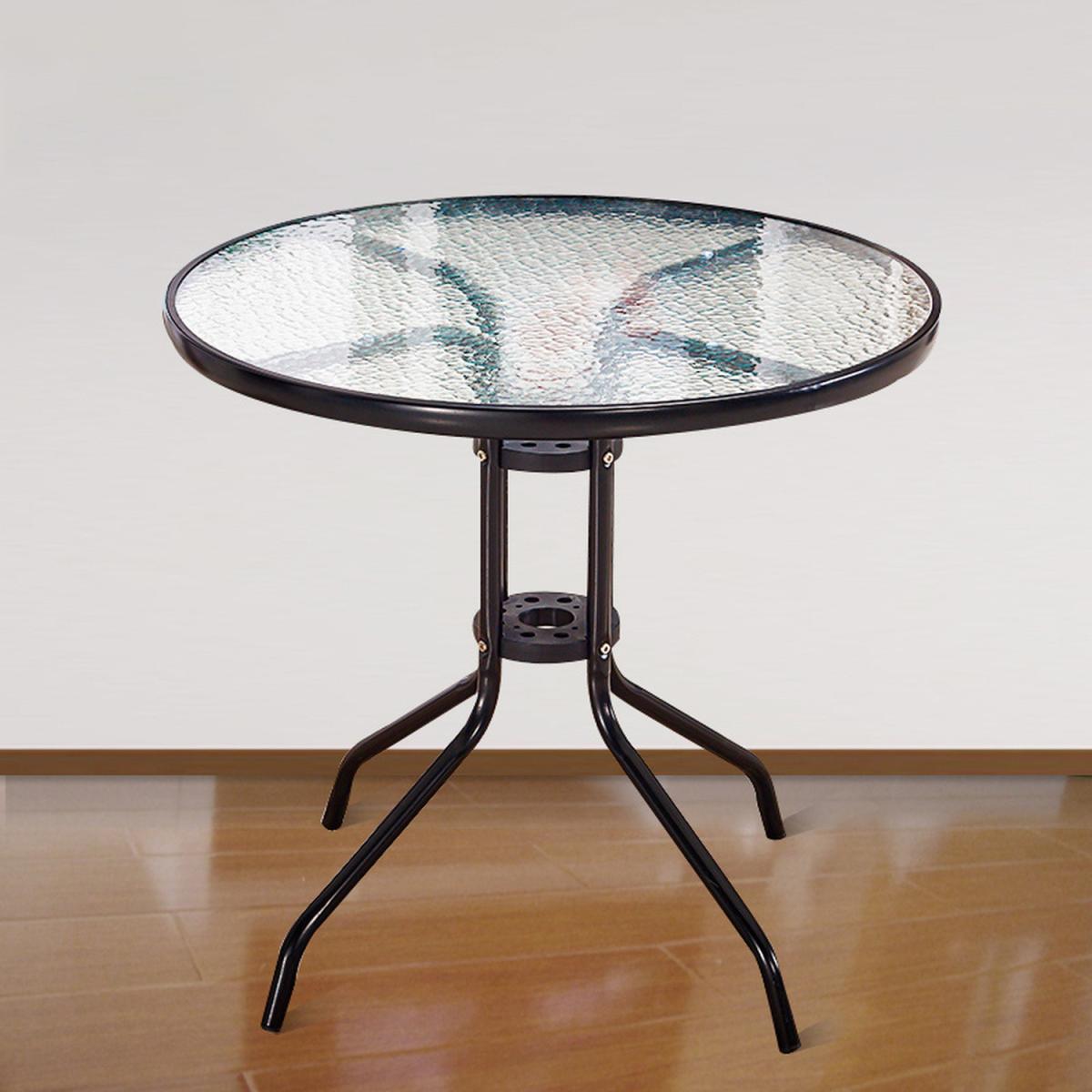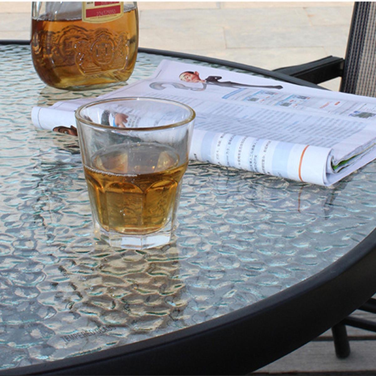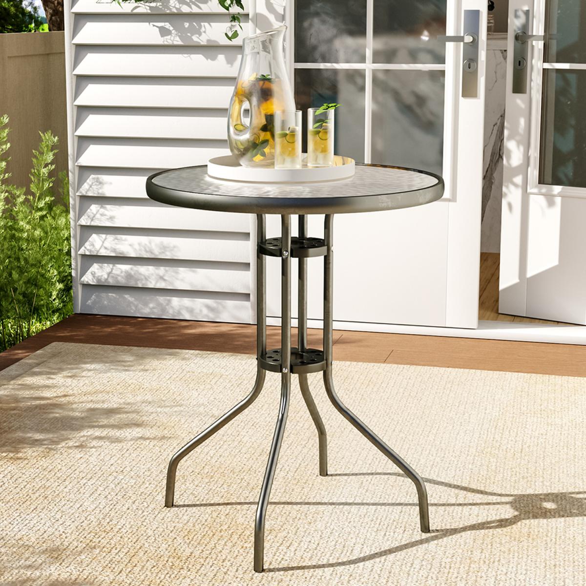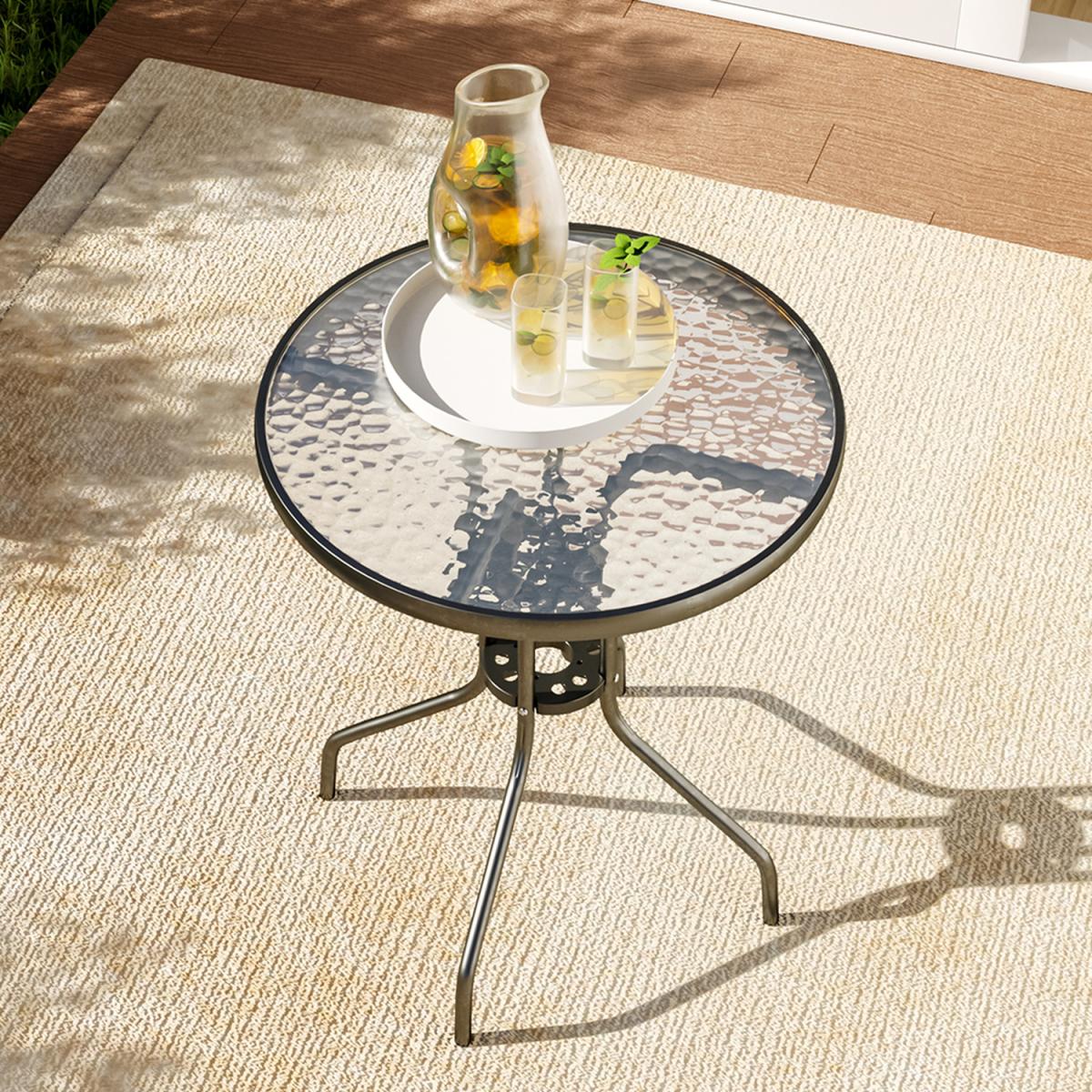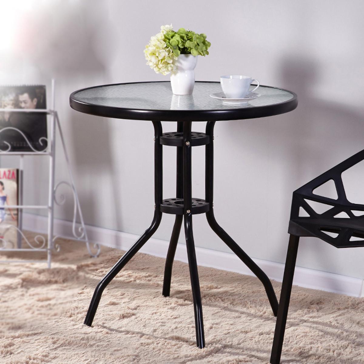 Look to this bistro table(without chair) for a stylish addition to your garden and outdoor dining area. Made from powder coated steel for strength and durability, the tempered glass top adds a beautiful touch. The tabletop glass is tempered for safety, and the table is easy to clean with a damp cloth. Solid metal frame structure, not easy to shake, not permeable, glass tabletop not easily deformed and rusted, Water rippled design adds a sleek and stylish touch. Widely used as a coffee table or as a side table, lamp table and storage table or flower stand. With product installation manual and required accessories, easy to operate. Ideal for gardens, yards, patios, and balconies.