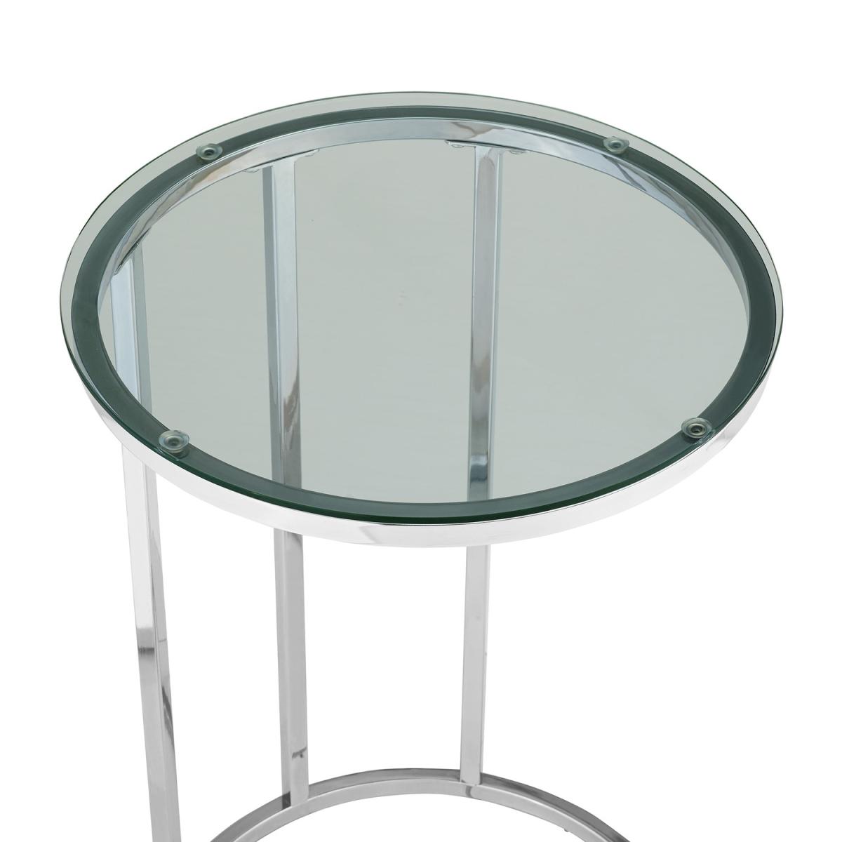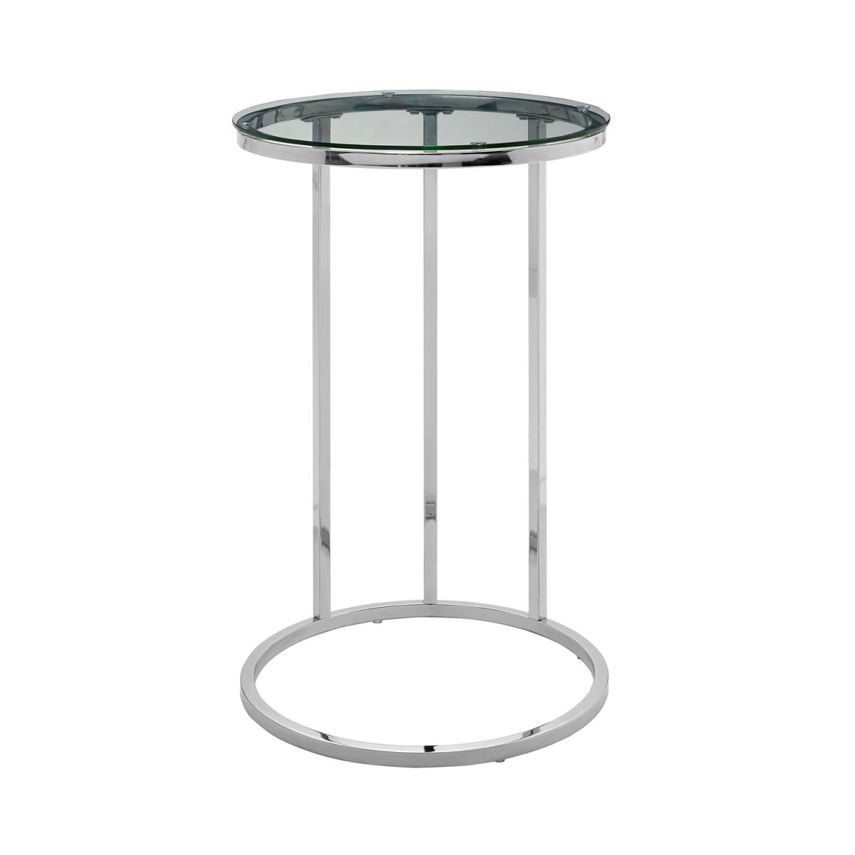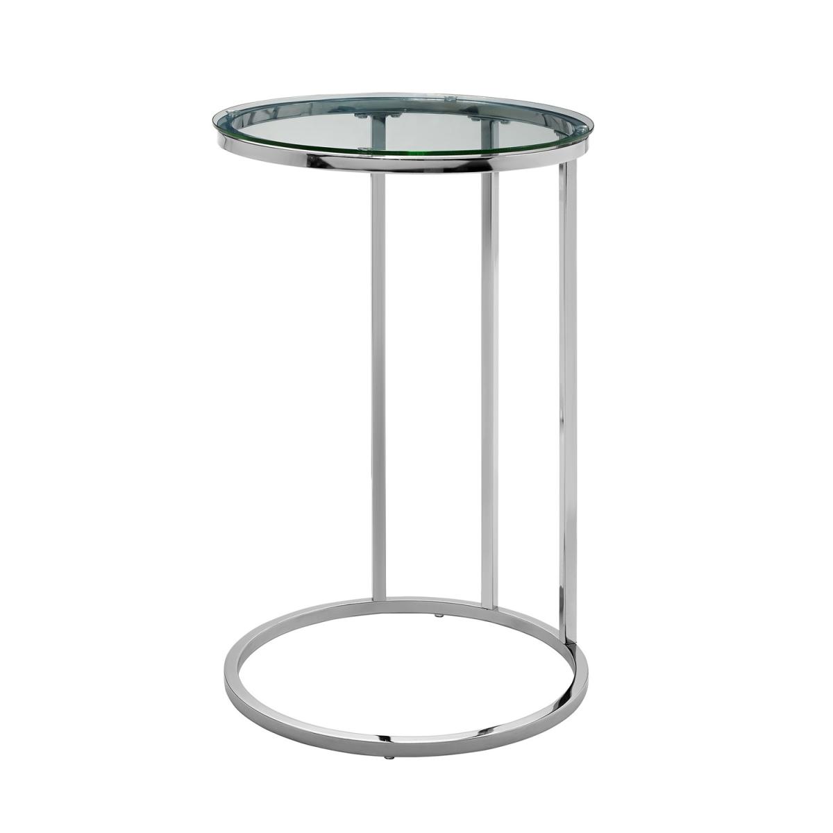 This side table makes for a multi-functional and on trend piece in your living room. With a trendy modern and glam aesthetic, it can be used as an accent table in your living room and double as a TV tray for your food while watching your favourite show. Made with a round surface and an asymmetrical chrome metal frame that'll make a unique addition in your home.