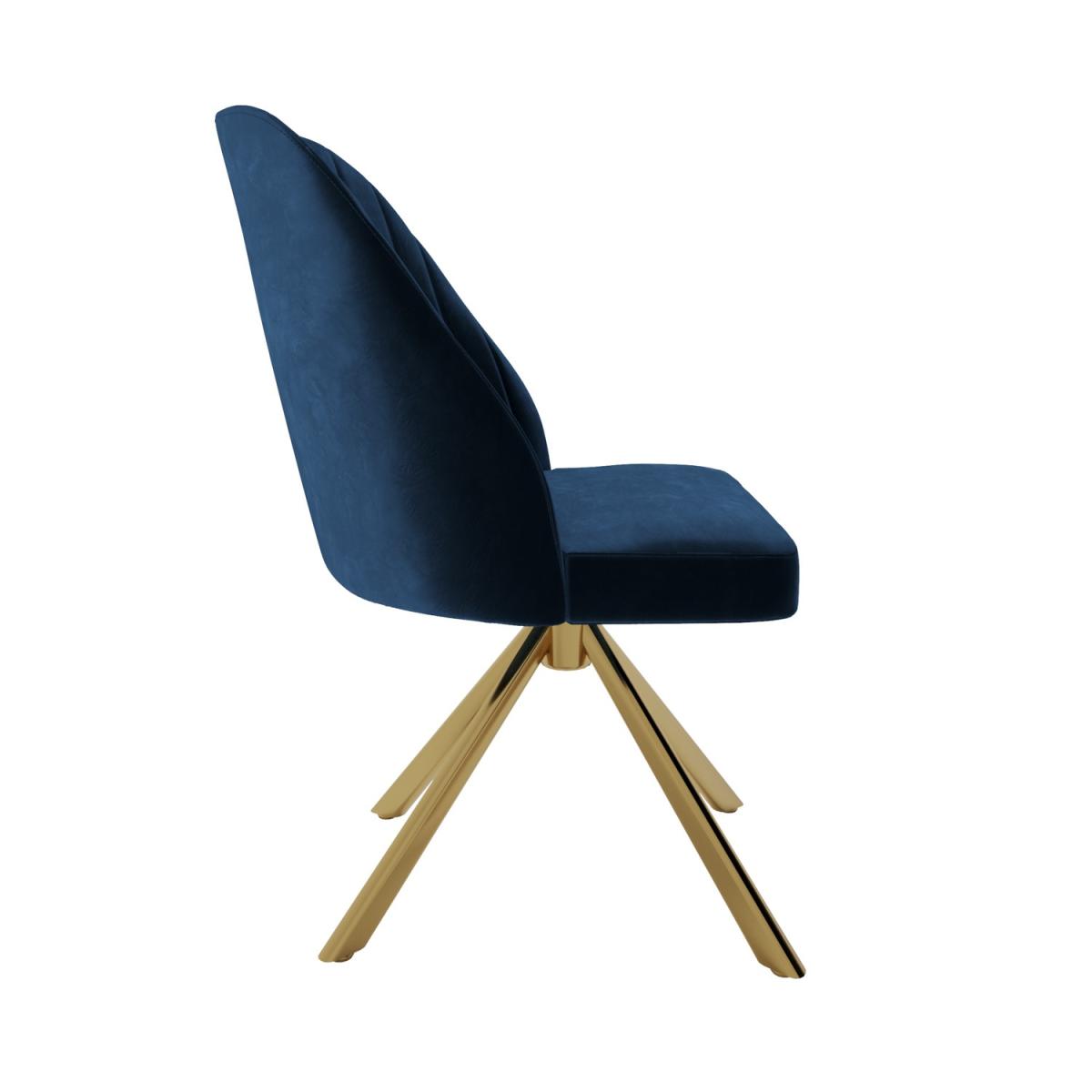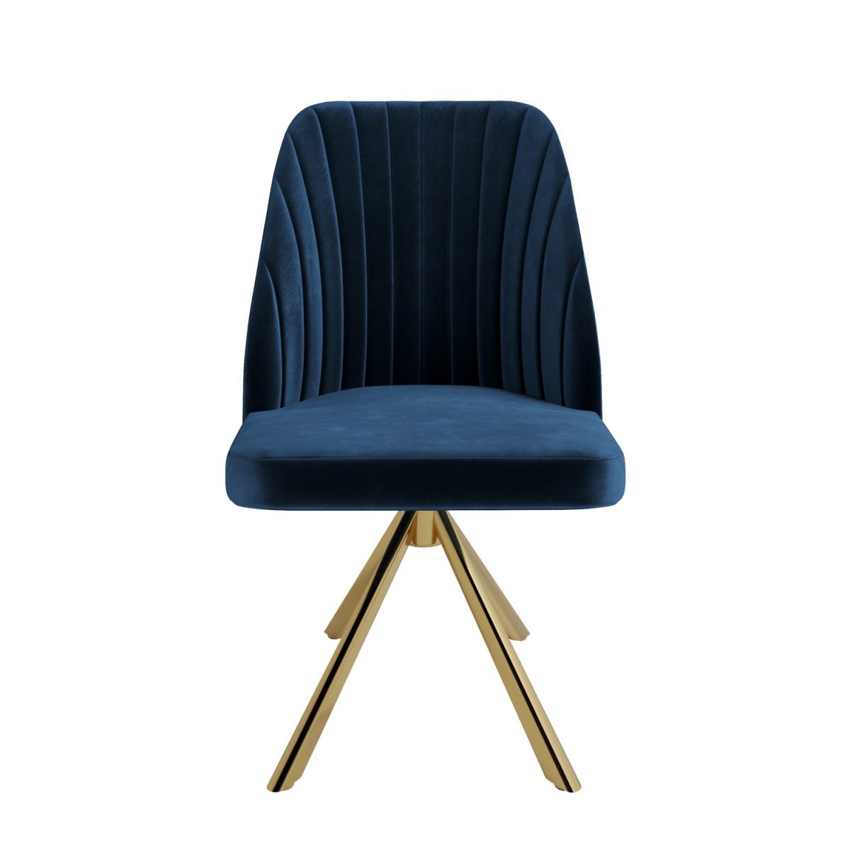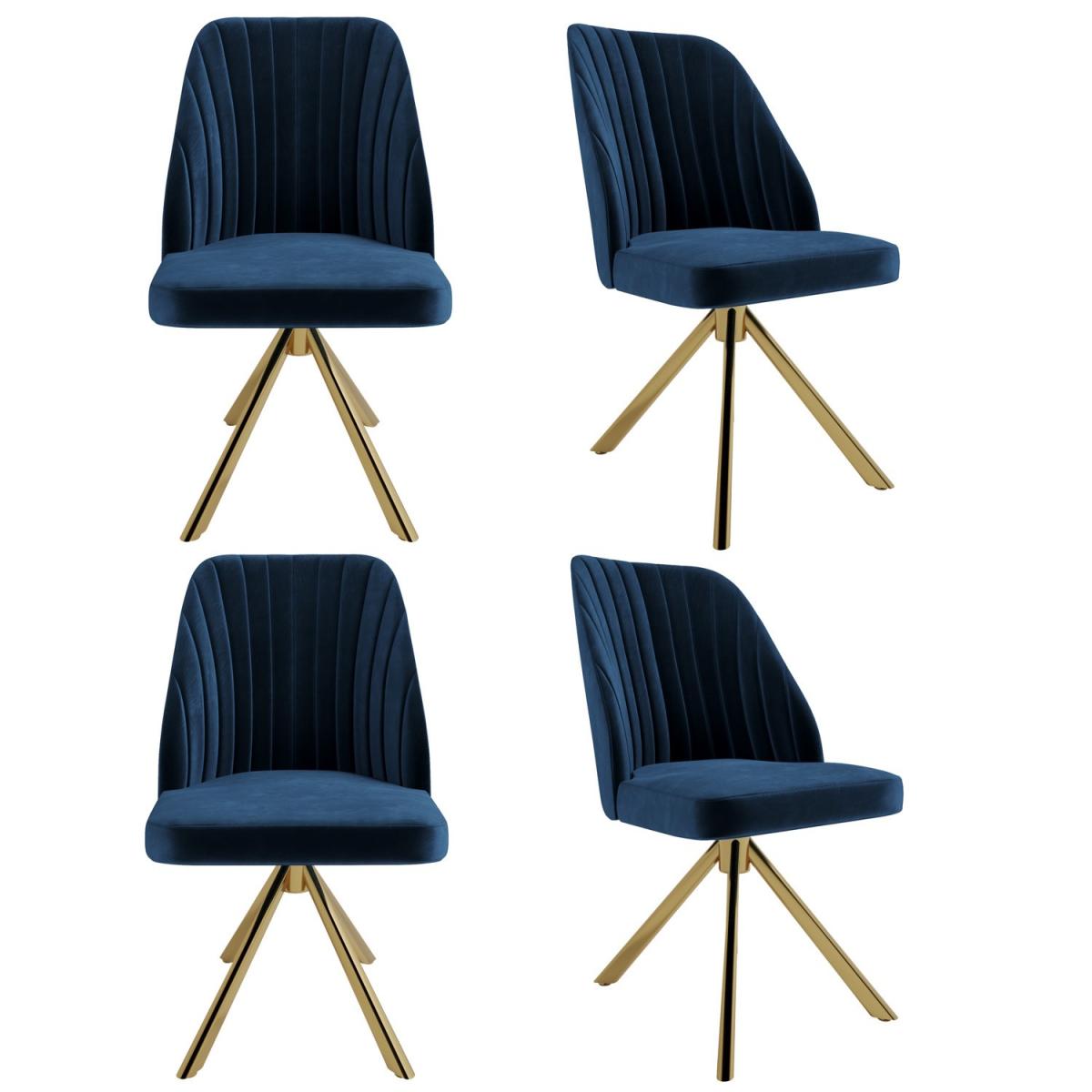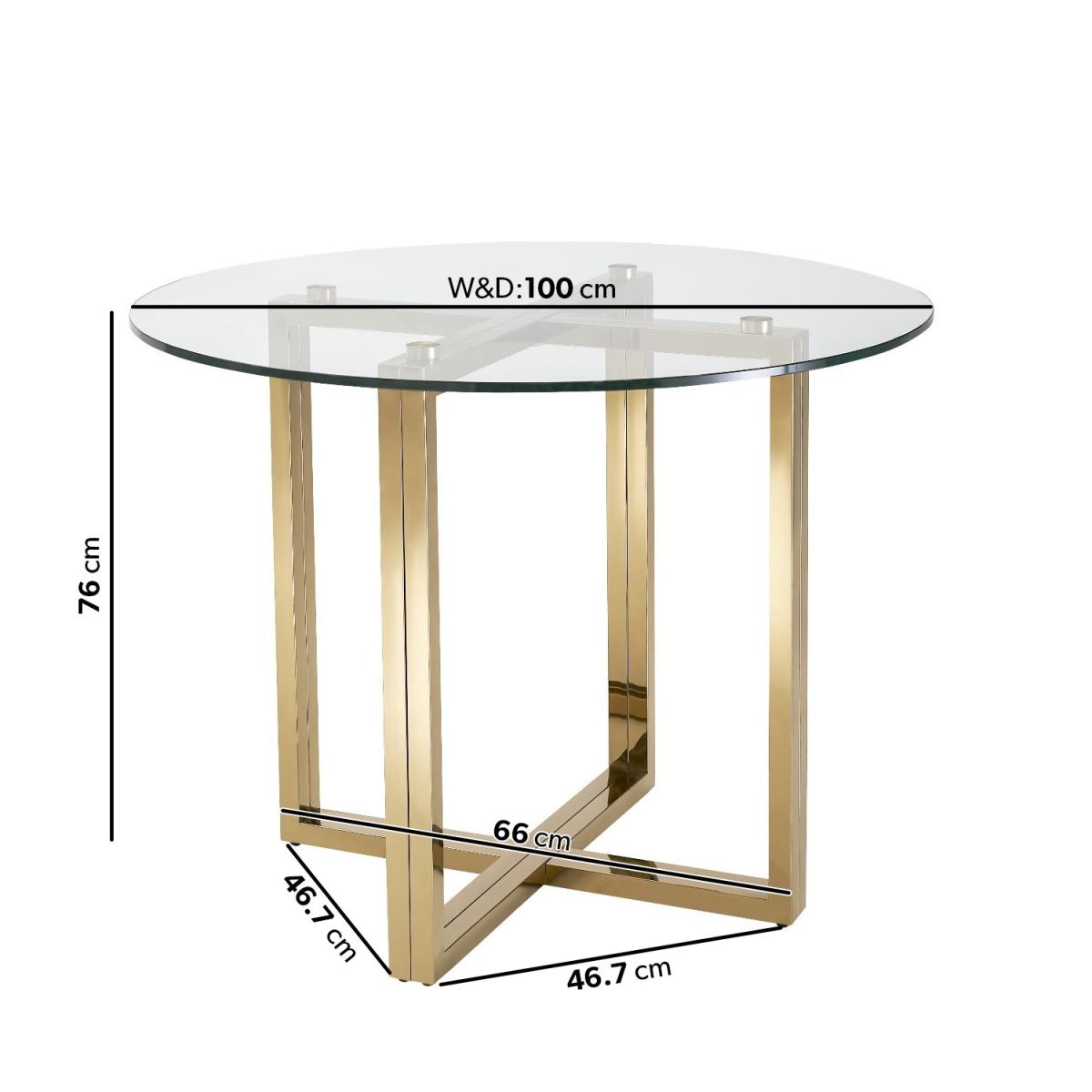 Small round dining table and chairs with gold metal frames Comfortably seats up to four people around the table Table top is made from tempered glass for safety Cross-frame base allows for extra leg room when dining Space saving navy velvet swivel dining chairs 360-degree swivel function is perfect for small spaces Curved backrest offers comfort and ample back support Need to know Dining Table Information Seats: 4 Shape: Round Colour:Gold and transparent Finish: Tempered glass top and gold chromed legs Material: Glass and stainless-steel For use: Indoors Product weight: 33kg Assembly required: Yes - just the legs Dining Chair Information Number of chairs: 4 Colour: Navy and brass Finish: Navy Velvet with brass legs Material: Fabric top and metal base Assembly required: Yes