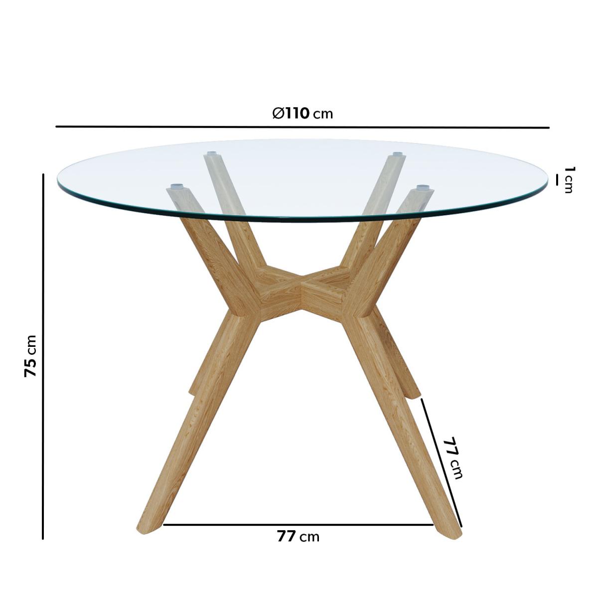 Heat and scratch-proof tempered glass top Sturdy and durable solid oak legs Includes adapters to secure glass tabletop to the legs Dining chairs are upholstered in a recycled fabric Featuring sleek oak legs, crafted from solid wood they are built to last Need to know Dining Table Information Finish: Natural wood and glass Material:Solid oak and tempered glass Assembly required: Yes Dining Chair Information Number of chairs: 4 Material: Recycled fabric and solid rubberwood legs Finish: White textured fabric with sleek oak legs Assembly required:Yes Range: Colbie
