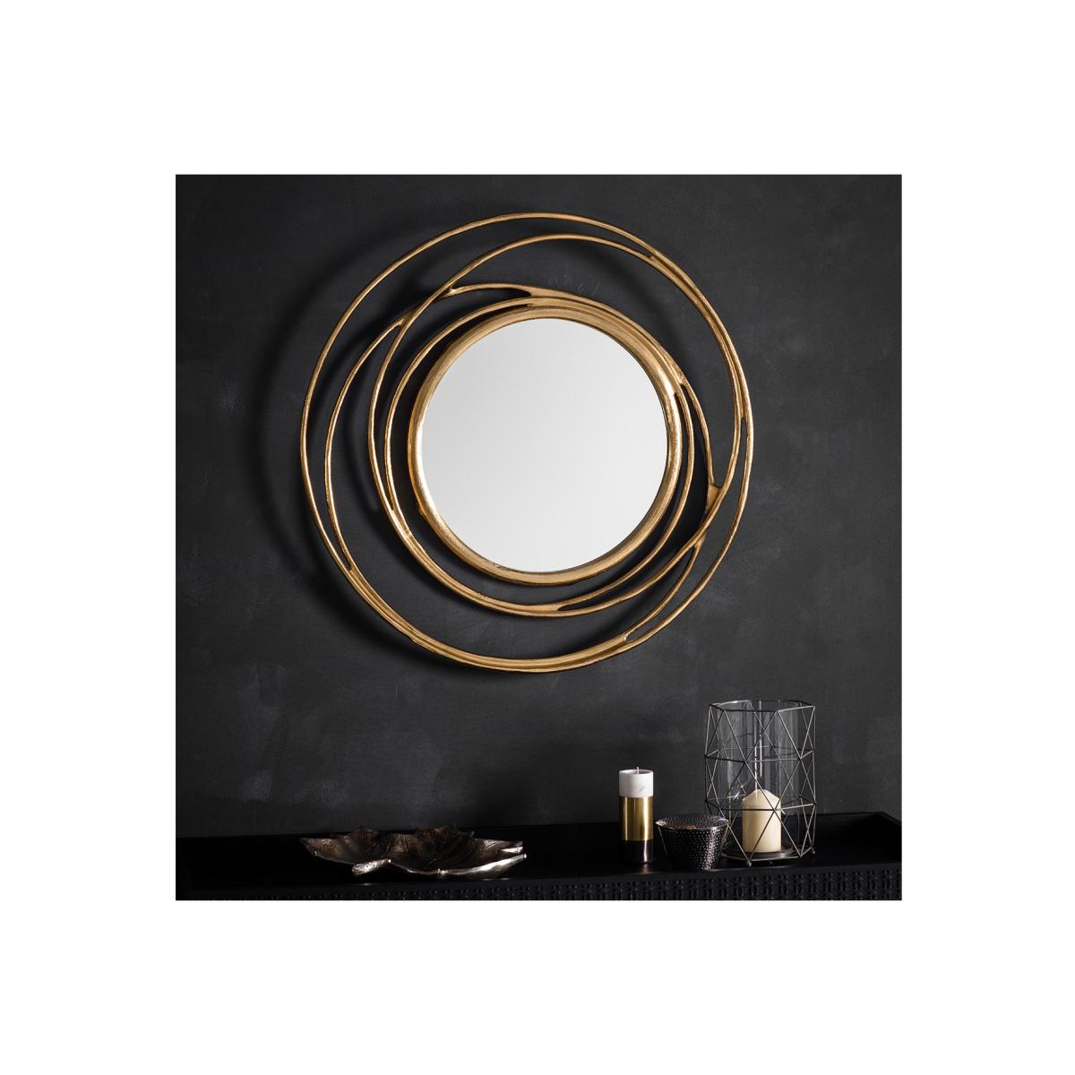 I love this mirror’s modern take on a classic design - the overlapping gold rings add a contemporary edge while the round shape keeps it versatile. It works particularly well in both minimalist and luxe interiors, adding a striking visual focal point that enhances light and space. For styling tips, consider hanging it above a console table or in an entryway to create an inviting first impression. Pair it with warm metallic accents or monochrome surroundings for a cohesive look. Its shape and finish make it a great statement piece without overwhelming the room, making it suitable for bathrooms, living rooms, or bedrooms alike.