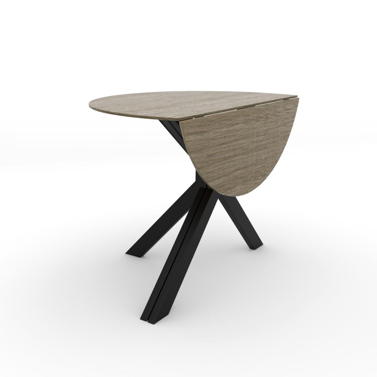 This bundle includes: Grey Wood Drop Leaf Dining Table - Seats 4 - Carson 4 x Black Velvet Dining Chairs - Jenna Features we love Industrial round drop-leaf dining table Comfortably entertain up to 4 guests The dining chairs are upholstered in a luxurious black velvet The elegant curved design creates a contemporary look Minimal assembly required for the chairs, just attach the legs Need to know Dining Table Information Dimensions unfolded: W100 x D100 x H75 cm Dimensions folded: W65 x D100 x H75 cm Package dimensions (box 1): W111 x D78 x H9 cm Package dimensions (box 2): W102 x D83 x H12 cm Weight: 22kg Seats: Up to 4 Shape: Round drop-leaf table Colour: Grey & black Top finish: Stained Base finish: Matt black powder-coated Material:Oak veneer backed with MDF and metal (legs) Assembly required: Yes Dining Chairs Information Number of chairs: 4 Dimensions: H86 x W51 x D46.5 cm Package dimensions: H52 x W52 x D42 cm Seat height: 45.5cm Product weight: 7kg Maximum load weight: 150kg Material: Velvet & Metal Finish: Black velvet & black metal legs Assembly required: Yes