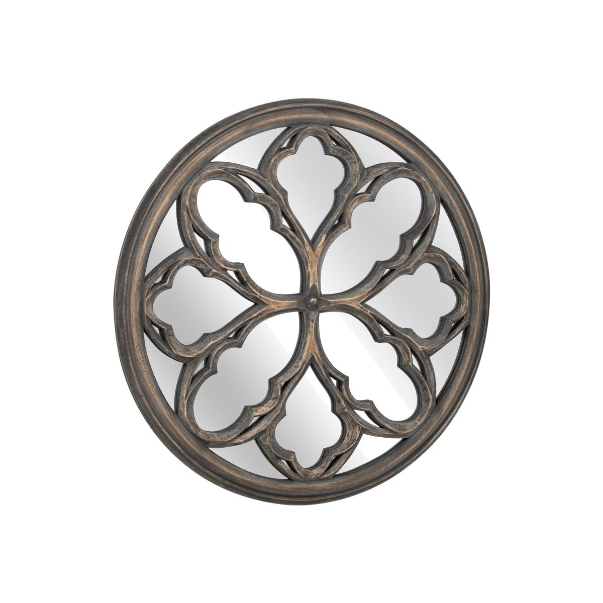 Dimensions H60 x W60 x D2.5 cm. The Avrey wall mirror is circular shaped mirror with a stunning broad edge and inner symmetrical pattern. Made from wood this stylish and practical piece is sure to impress. Features. Round mirror. Wall hanging. Light grey wash finish. Inner symmetrical pattern. The perfect addition to any room in the home. No assembly required..