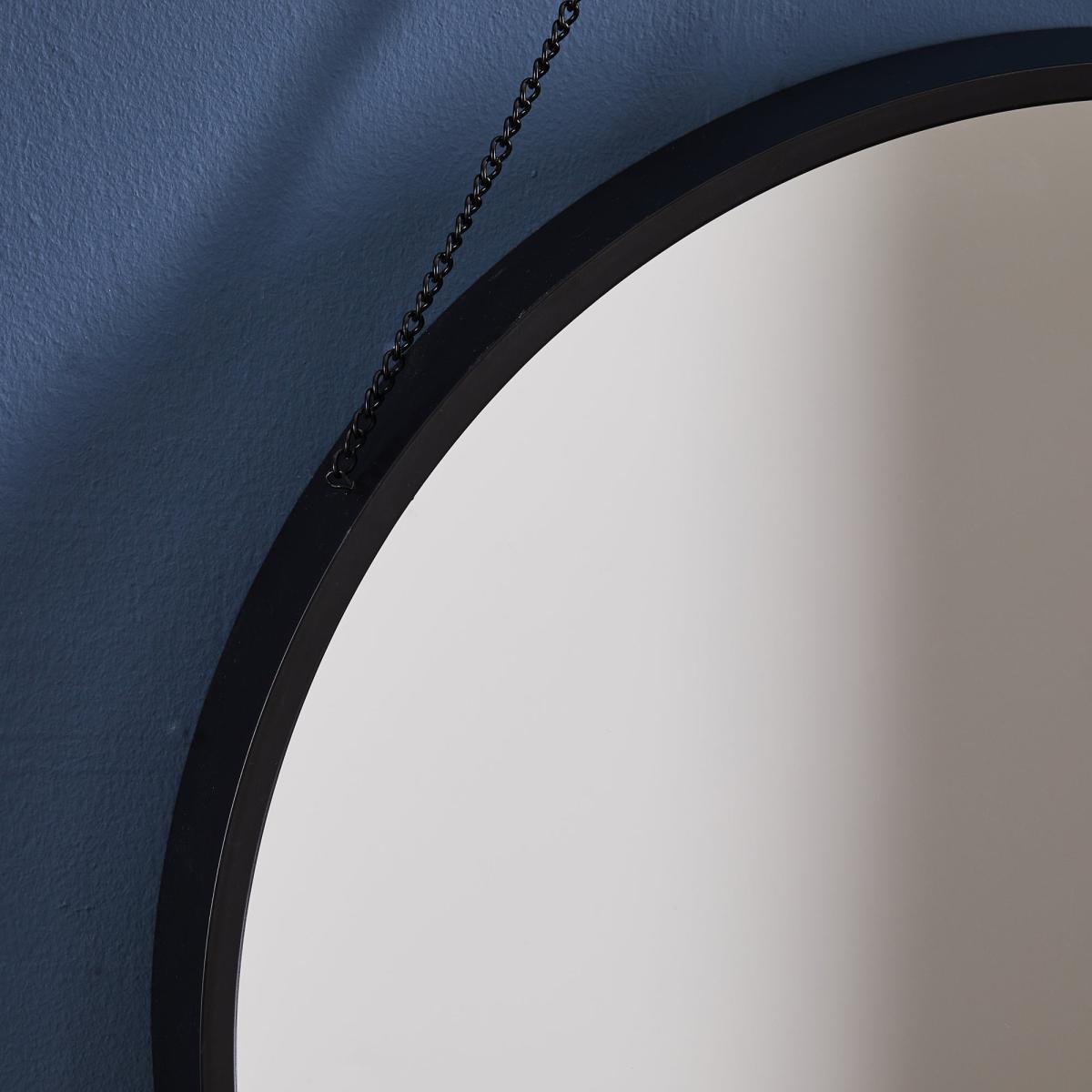 Add a simple and stylish touch to your home with this matt black mirror. Featuring an on-trend round shape, and chain detail, this mirror is ready to hang. Hang your new wall mirror using our helpful top tips, click. Here. To view.