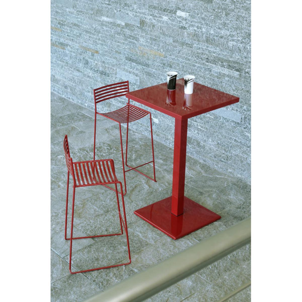 Round table (H 105 cm) designed by Christophe Pillet displays rigorously modern design. Simple and essential lines are highlighted by the symmetry between the base and square tabletop. Entirely made of anti-corrosion treated steel, it is an indoor and outdoor table at the same time. This unique and elegant table will fit into any environment and form a beautiful set with bar stools of the same collection. Round table is available in five colour shades: white, antic iron, black, grey, red.