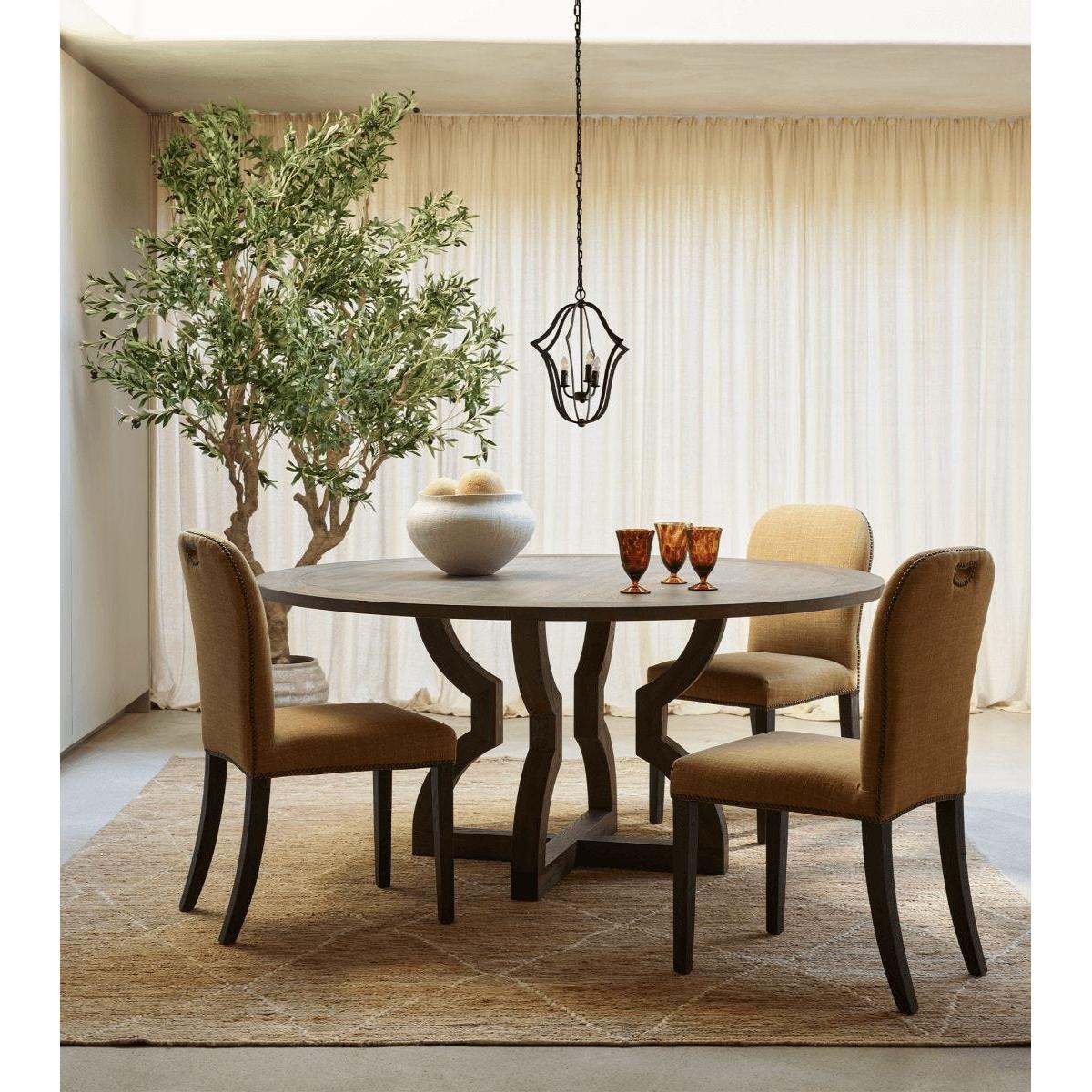 I love this round Kaishu dining table for its clean lines and versatile design. The watered grey finish adds subtle texture, making it easy to incorporate into both contemporary and rustic interiors. It's perfect for smaller dining spaces or open-plan kitchens where a sense of intimacy is key. When styling, pair it with upholstered chairs for a softer look or go for mixed materials like metal or wood for added interest. Practical tips include using a centrepiece like a neutral vase or candles to complement its colour and shape, and considering protective pads under the legs if placed on delicate flooring. Overall, it's a stylish yet functional choice that Elevates any dining area.