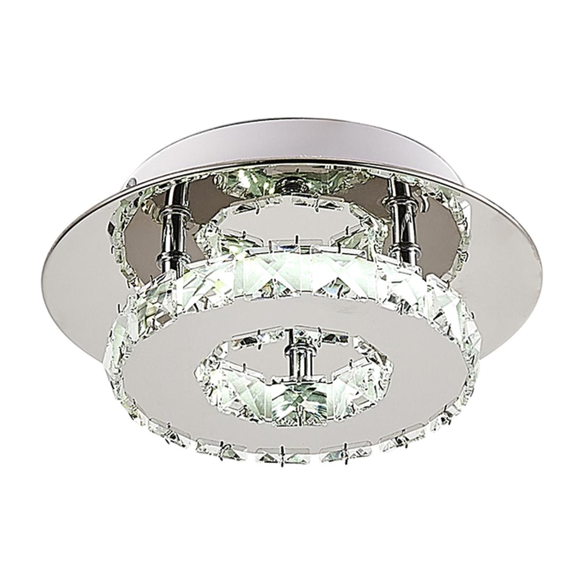 Contemporary Style but with a little elegance, This flush mount with a suspended single tier crystal panel did it just right. It has a wonderful combination of modern and luxe, you will be glad to see it placed in your room. Canopy and rods are made of stainless steel, which eases your concern about the quality. Pretty good choice to install in the bedrooms.
