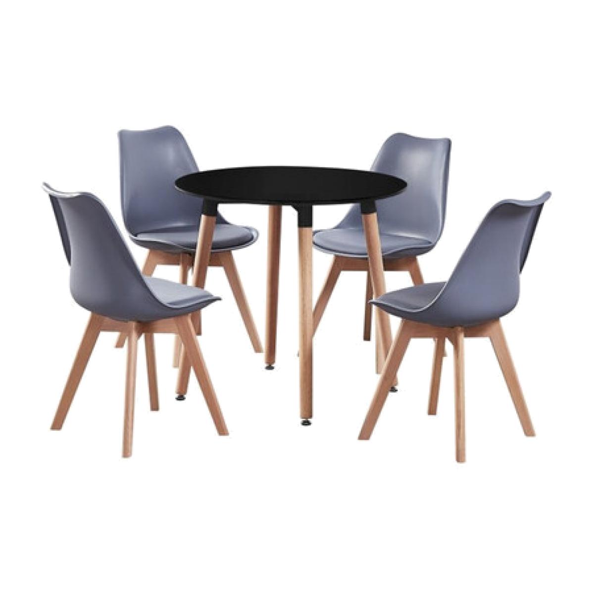 We are offering the round Lorenzo Dining Set that includes the round Table, which delivers superior comfort and durability and makes it perfect for everyday use. Solid wooden legs ensure that the table is sustainable and long-lasting. Its luxury yet simple design will elevate your dining space to a new level. A perfect table for everyday family mealtimes, as well as an excellent table for grownup dinner gatherings. Also, the dinette table offers a brilliant surface solution for placing drinks, food, and snacks with its perfect size making it even easier to place anywhere you wish without cluttering your room. Combined with stylish and functional Lorenzo dining chairs. Features a robust ergonomically-moulded polypropylene curved shell to provide support to your back or spine, Padded faux leather seat for a comfortable sitting experience. Supported by solid wood legs, complemented by a smooth waterfall edge and foot pads to protect your floors from scratches. Superior manufacturing provides durability that will withstand the test of time.