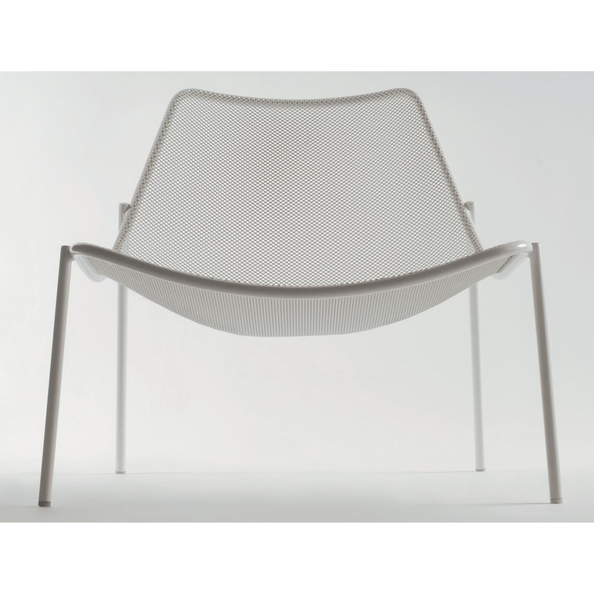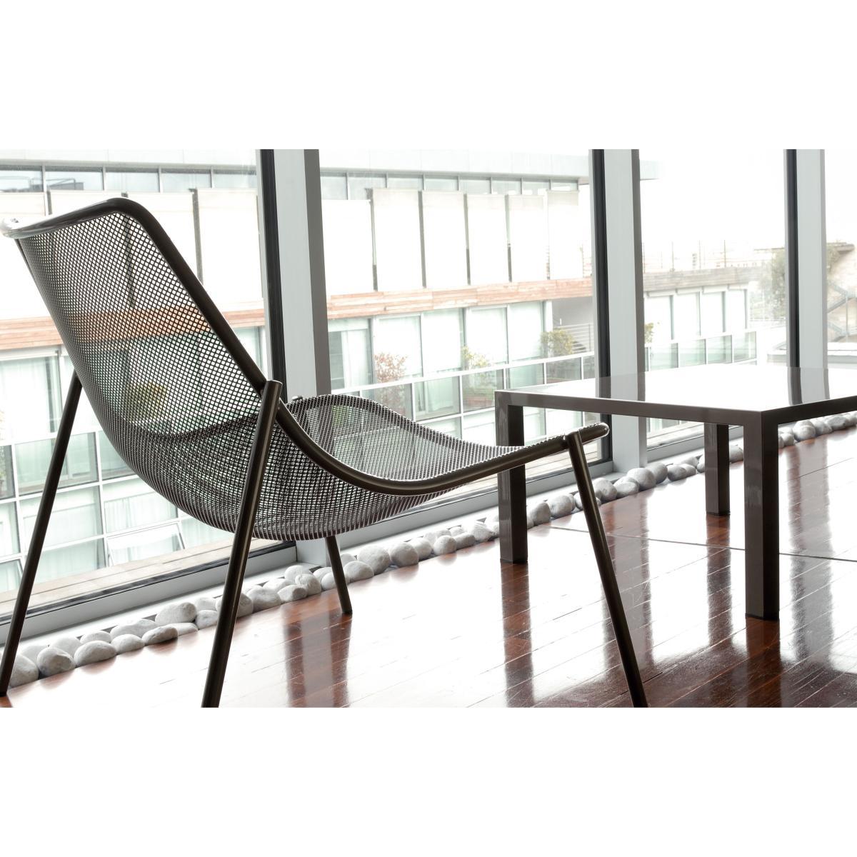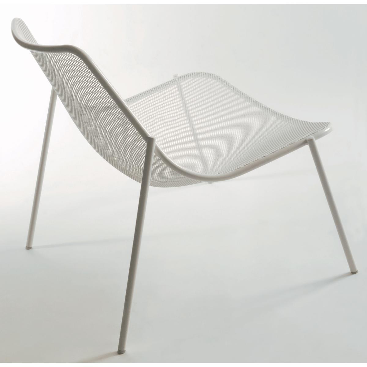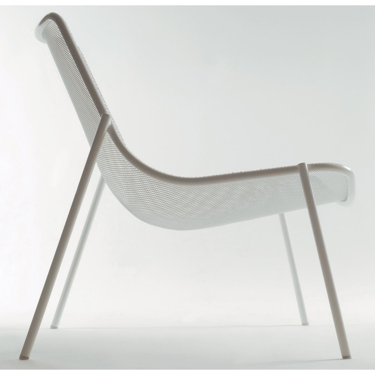 This "lounge" Round Low armchair by Christophe Pillet displays round lines and airy design. It is a real technological feat: this collection transforms steel – rigid and cold – into "plastic", soft and extensible material. Thanks to an innovative process, the shell of the Round chair is made of a stretched metal sheet that is moulded and shaped in one movement. Its enveloping forms, backrest and large seat (92 cm) guarantee optimal comfort. The metallic intertwining creates volume and an impression of incorporeality. A balanced design and a discrete elegance. This piece will fit to any home, garden or public area (cafés, restaurants,. ). Round chair is available in five colour shades: white, antic iron, black, grey, red.