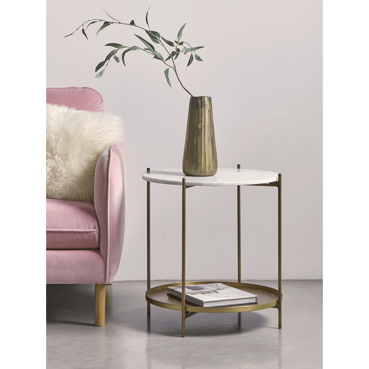 I love this side table because of its classic blend of marble and brass, which adds a touch of sophistication without feeling overly formal. It works really well in contemporary, mid-century, or minimalist interiors-its neutral surface makes it versatile enough to complement both colourful schemes and monochrome palettes. When styling, consider using it as a nightstand or next to your sofa, layering it with a small stack of books or a statement vase to keep the look natural and uncluttered. Its round shape also makes it perfect for softer, more organic spaces, while the metal detailing adds a subtle luxury that elevates the overall aesthetic.