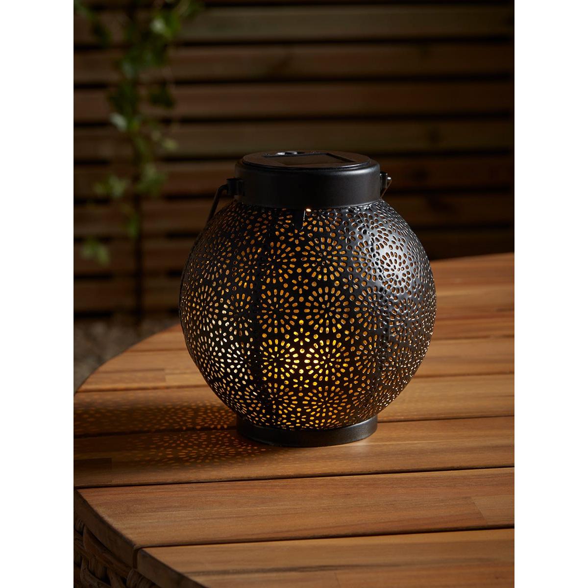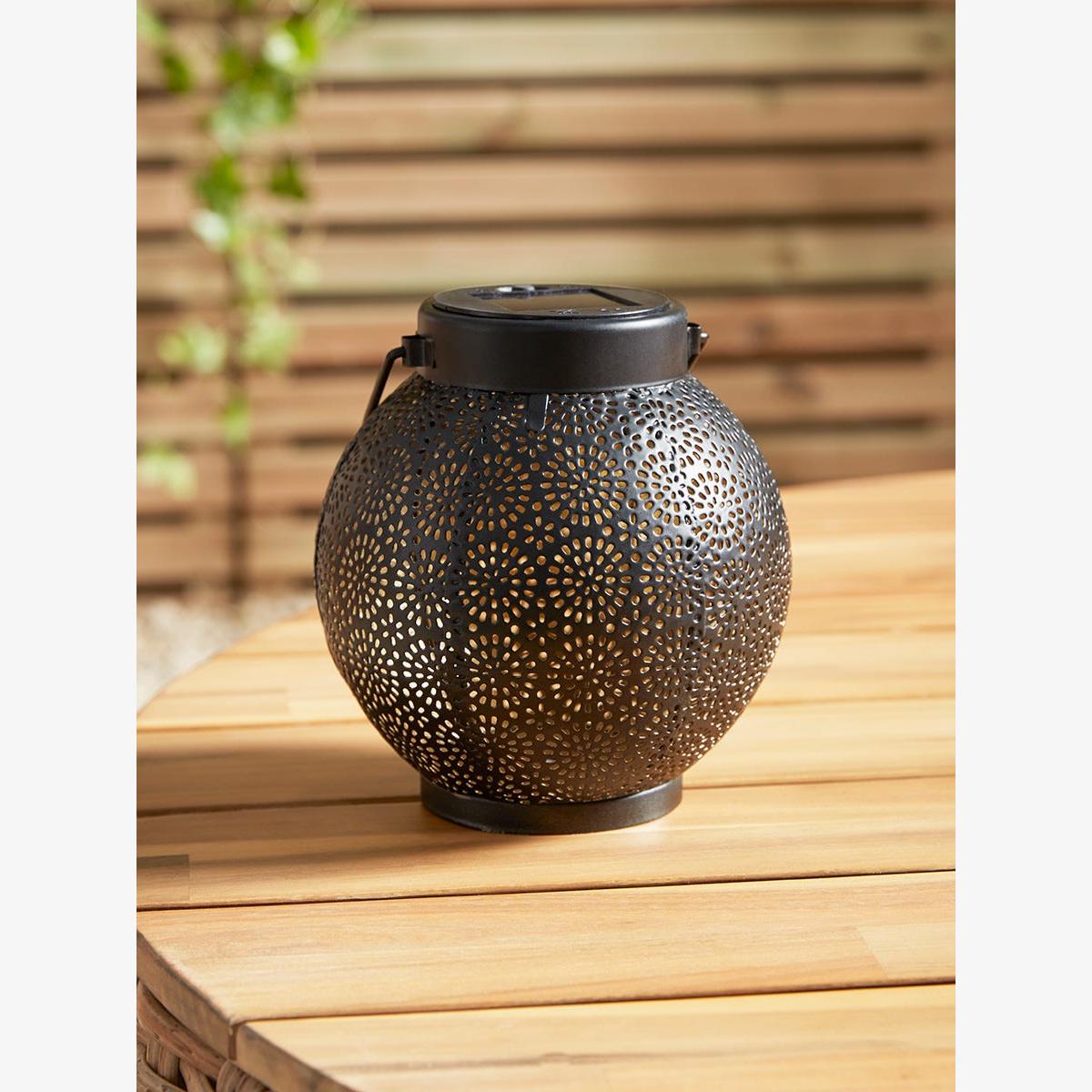 The delicate filigree pattern of our Round Maroq Lantern will ensure the prettiest of dappled lights is cast when dusk falls in your garden. In black metal, the lantern has a timeless quality that will add ambience to any outdoor setting.