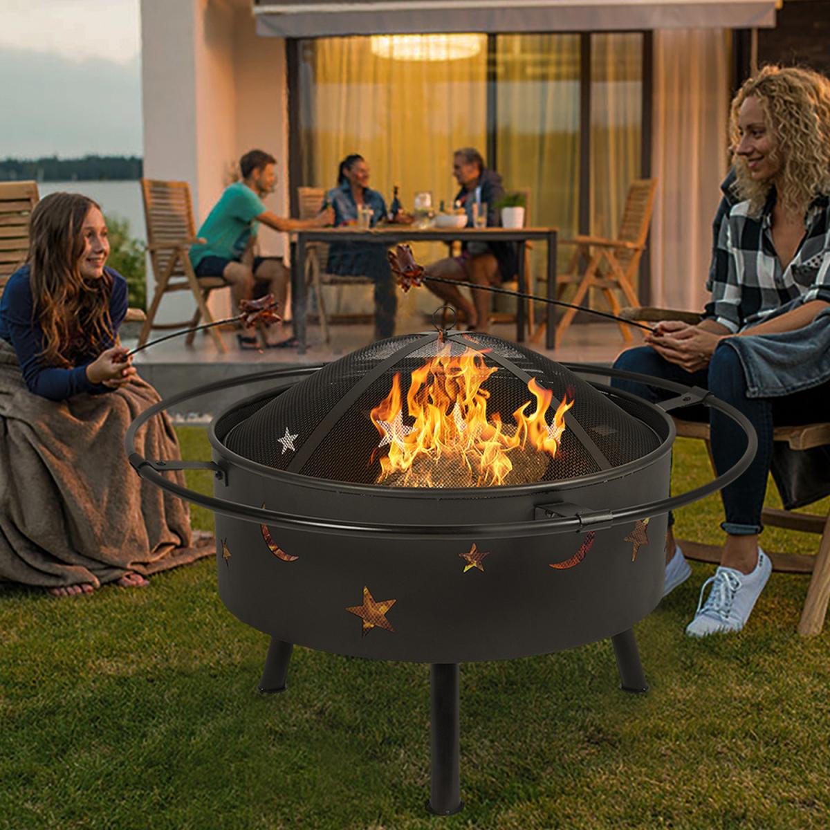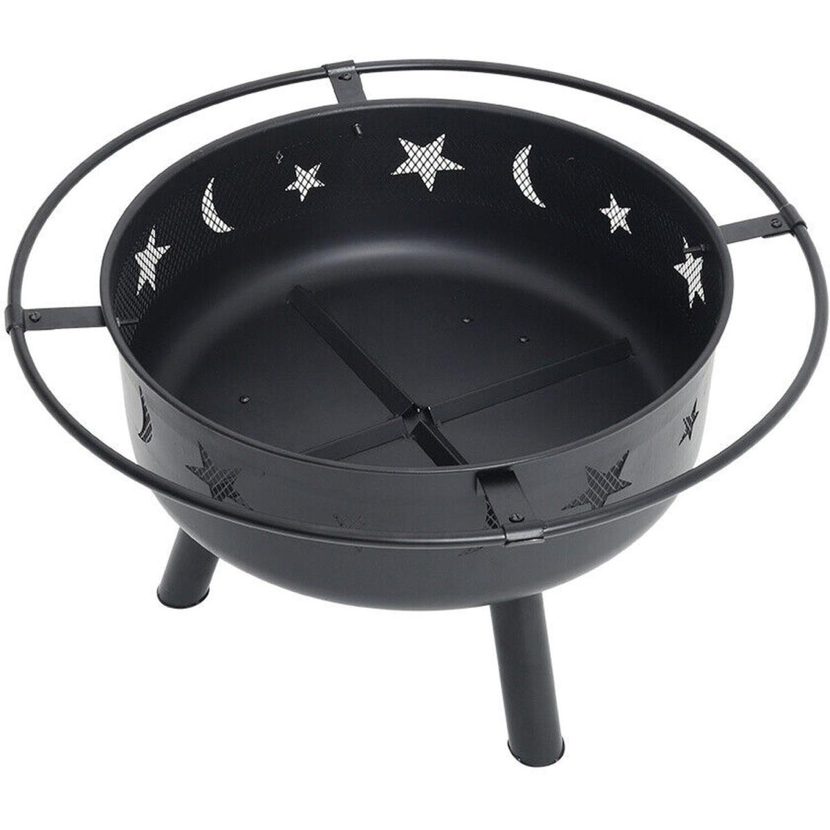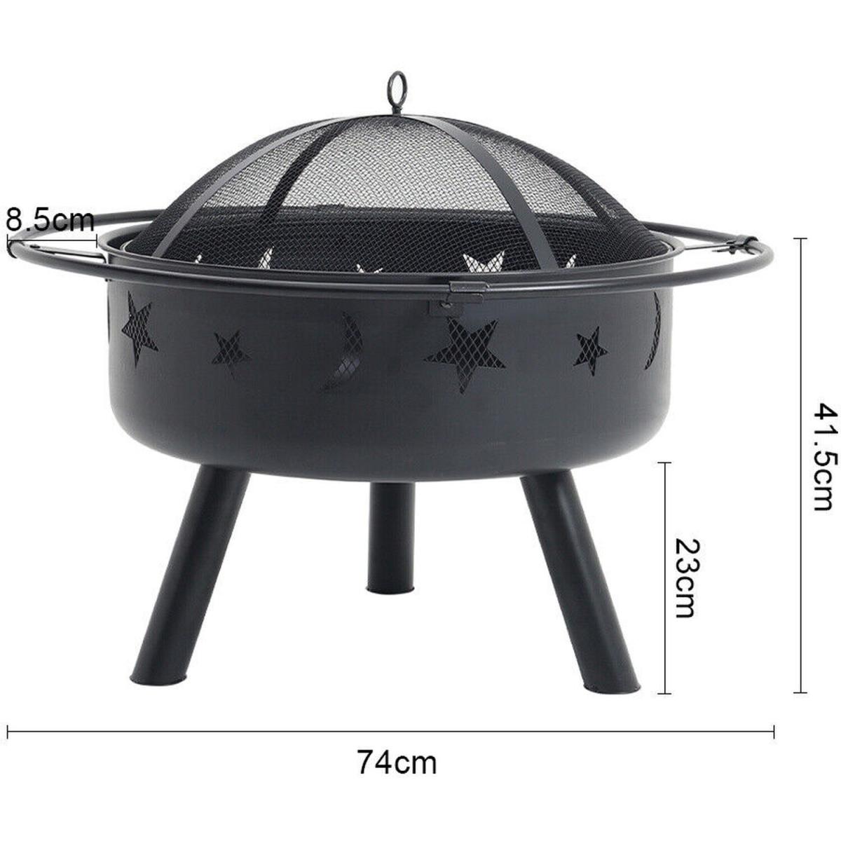 Round Metal Fire Pit Bowl Garden Stove Wood Burner Heater - Black