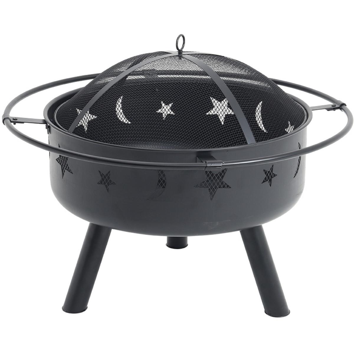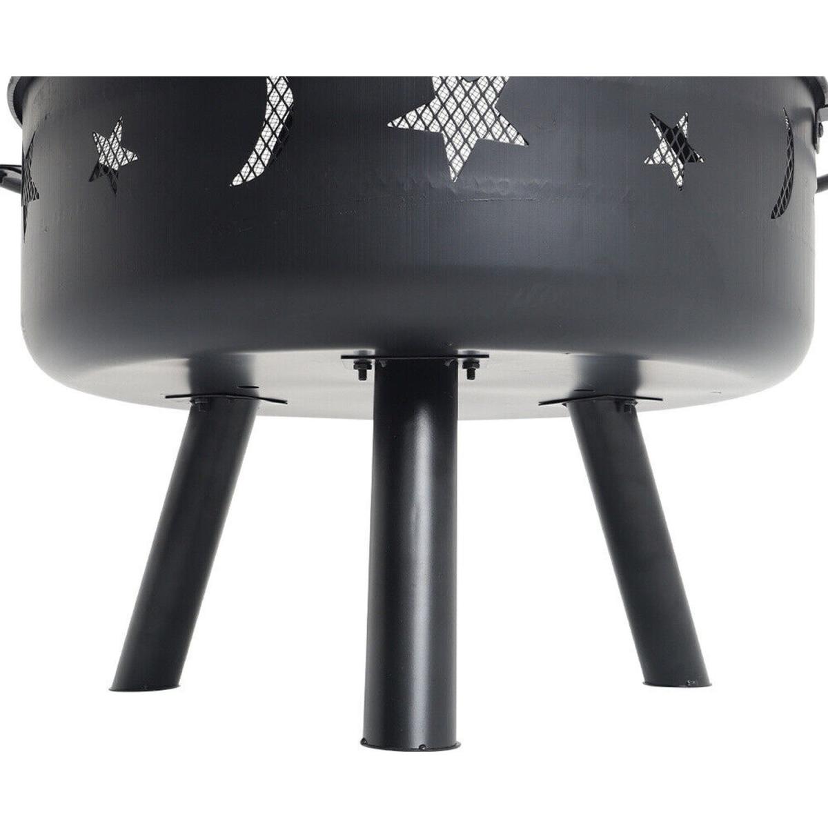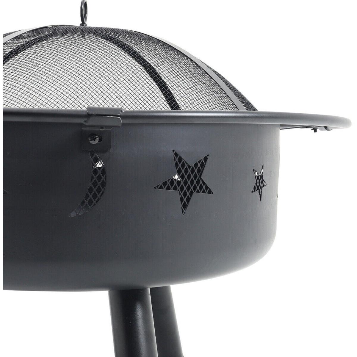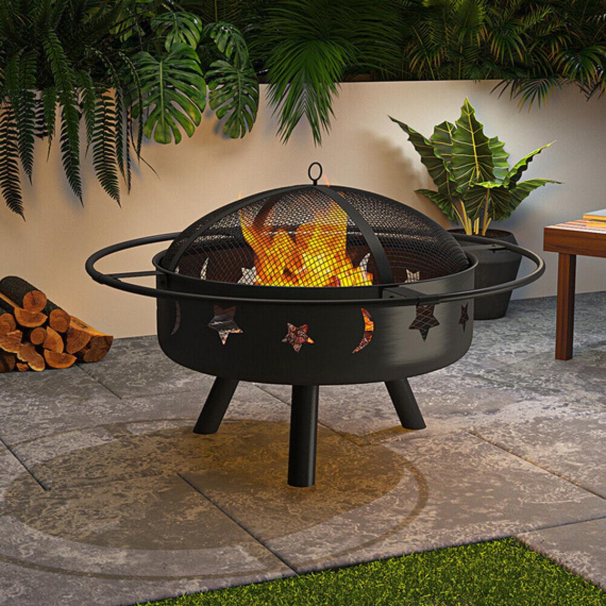 Round Metal Fire Pit Bowl Garden Stove Wood Burner Heater - Black