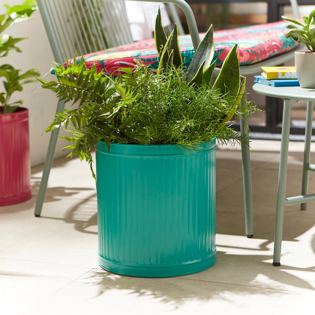 I love this round metal plant pot because of its contemporary, sleek design and vibrant aqua colour, which instantly lifts a space. It works well in modern interiors or even in eclectic setups where a pop of colour is welcome. Its bold hue makes it ideal for adding visual interest to neutral or minimalist schemes, while the size is perfect for creating a focal point with larger indoor plants. For practical styling, consider pairing it with low-maintenance greenery like succulents or ferns for a fresh, inviting look. Placing it on a patio or balcony can also bring a lively touch outdoors. Overall, it’s a versatile choice that combines style with function effortlessly.