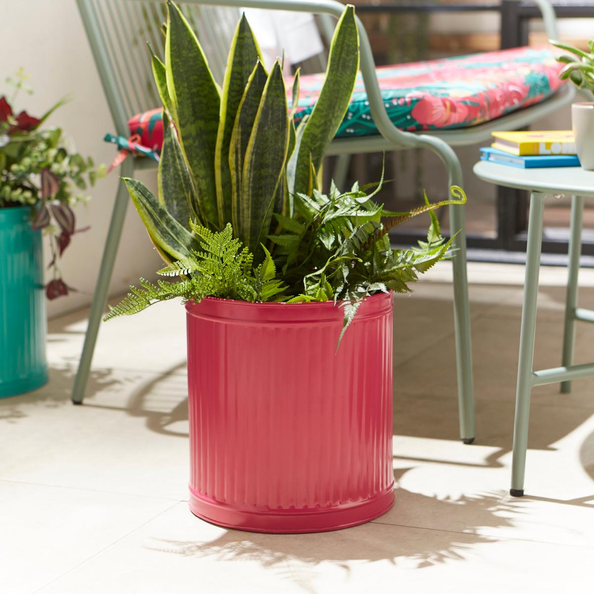 I love this pink plant pot for adding a pop of colour and a contemporary touch to various interiors. The round metal design offers a sleek and minimal aesthetic that works well in modern, industrial, or eclectic spaces. It’s versatile enough to sit on a windowsill, side table, or even as a statement piece in a corner. For styling tip, pair it with a variety of leafy green plants like snake plants or trailing pothos to create contrast and visual interest. Its durable metal construction makes it practical for both indoor and covered outdoor spaces, while the coloured finish adds a playful yet sophisticated vibe.